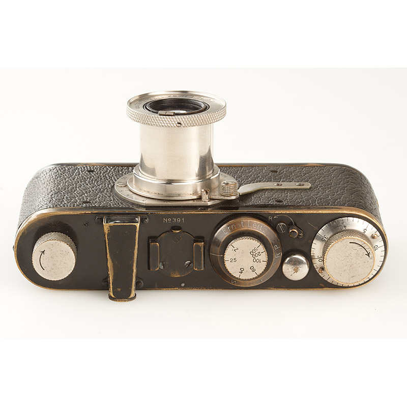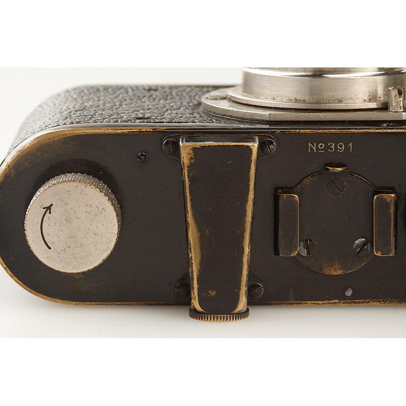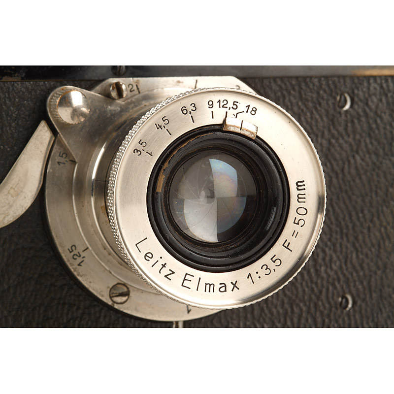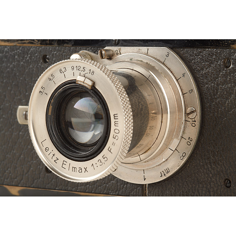 Leica I Mod.A with 5-element Elmax in original condition (first version, similar to the Anastigmat cameras), ratcheted film wind, early finder, vulcanite, mushroom shutter release, base-plate (open-close), black painted cap - as most early Elmax cameras have been upgraded during servicing by Leitz with removing original parts it is extremely hard to find cameras in original condition