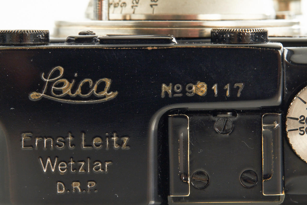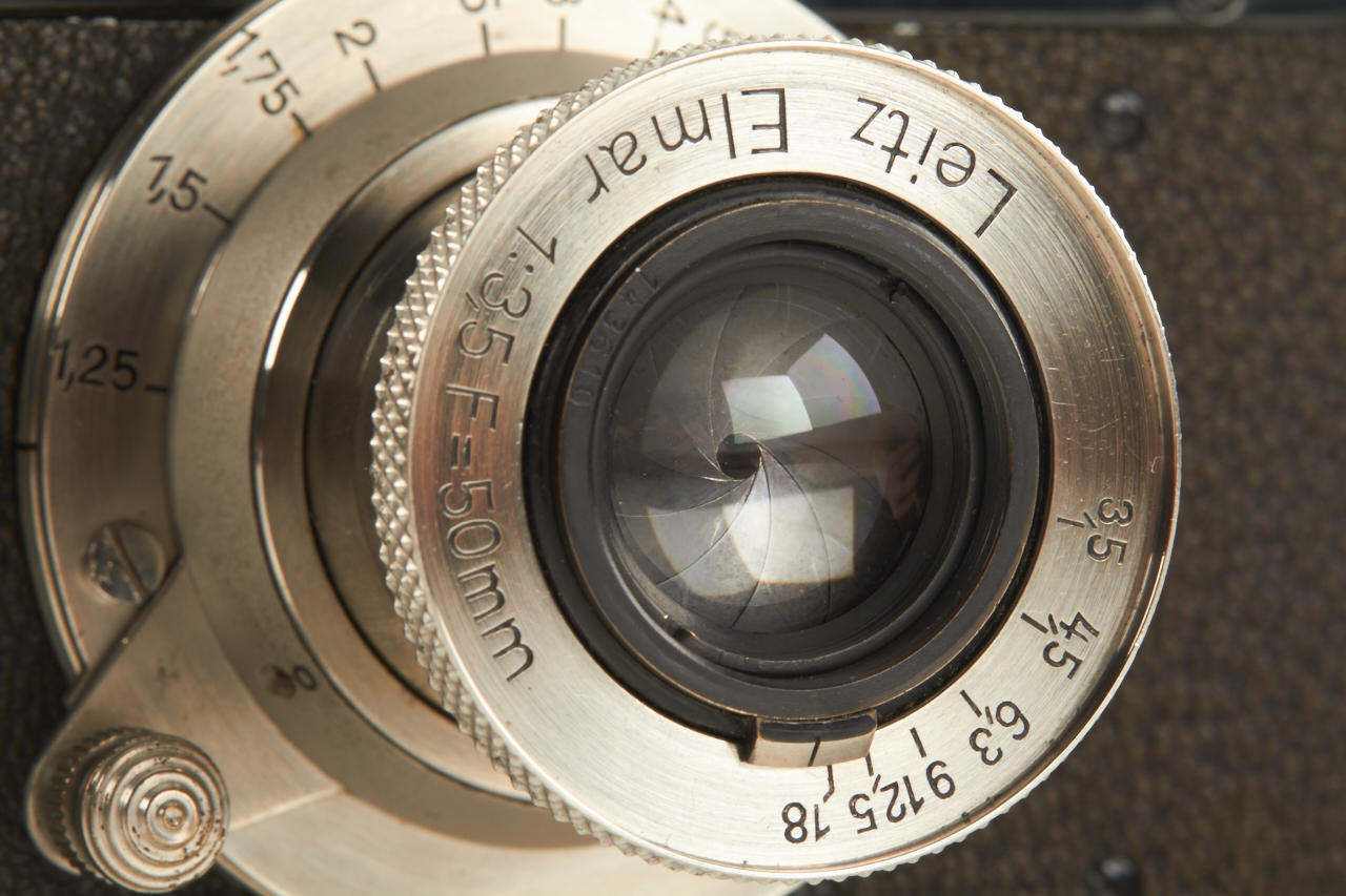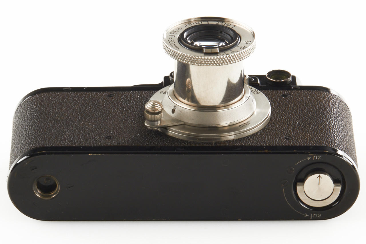 black camera with nickel fittings in beautiful, never restored condition, with matching nickel Elmar 3.5/50mm no.143610, bakelite cap