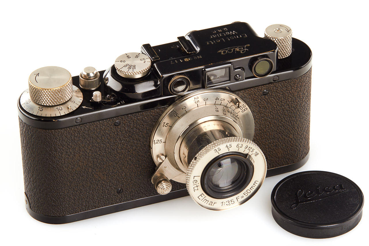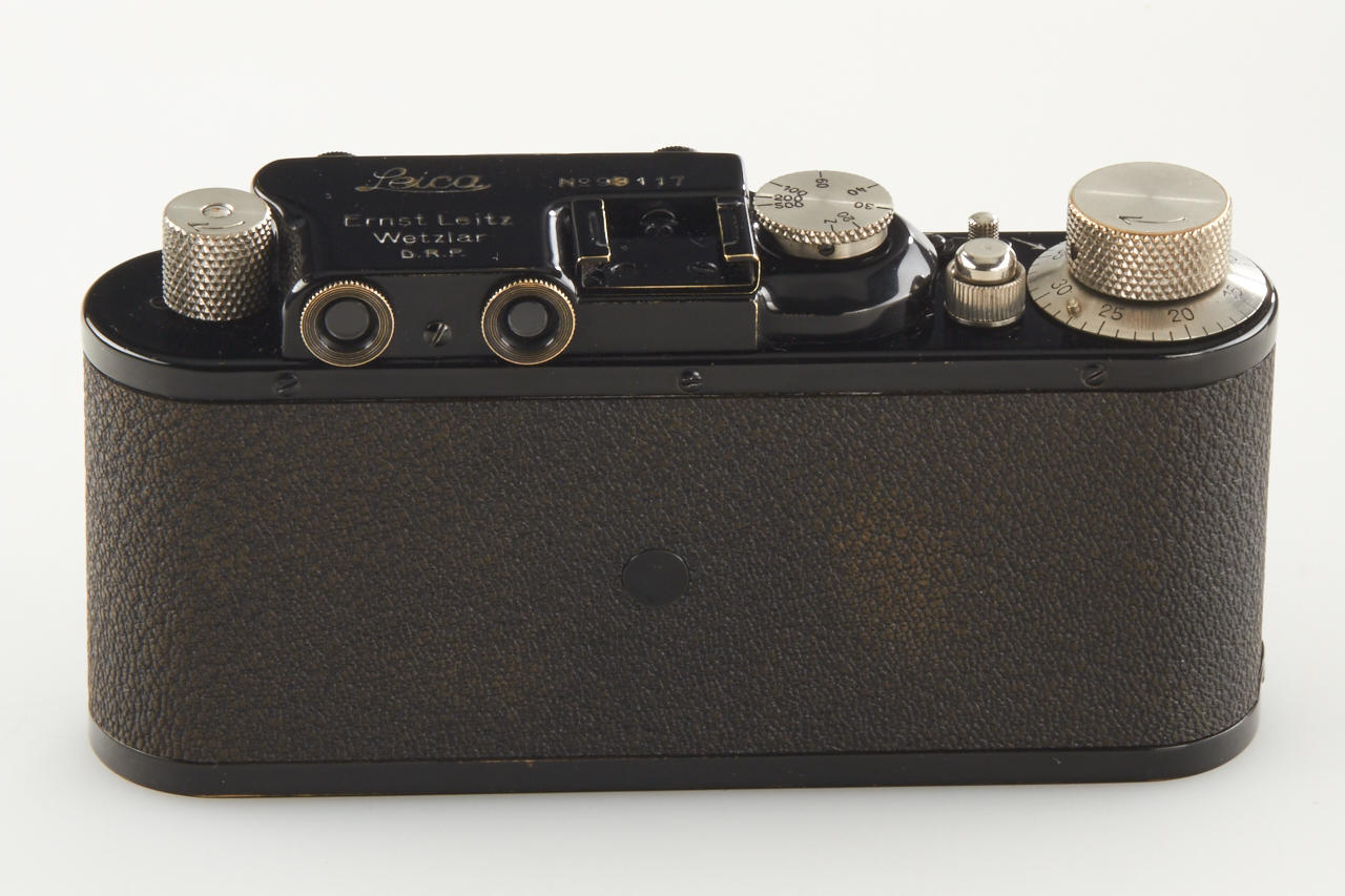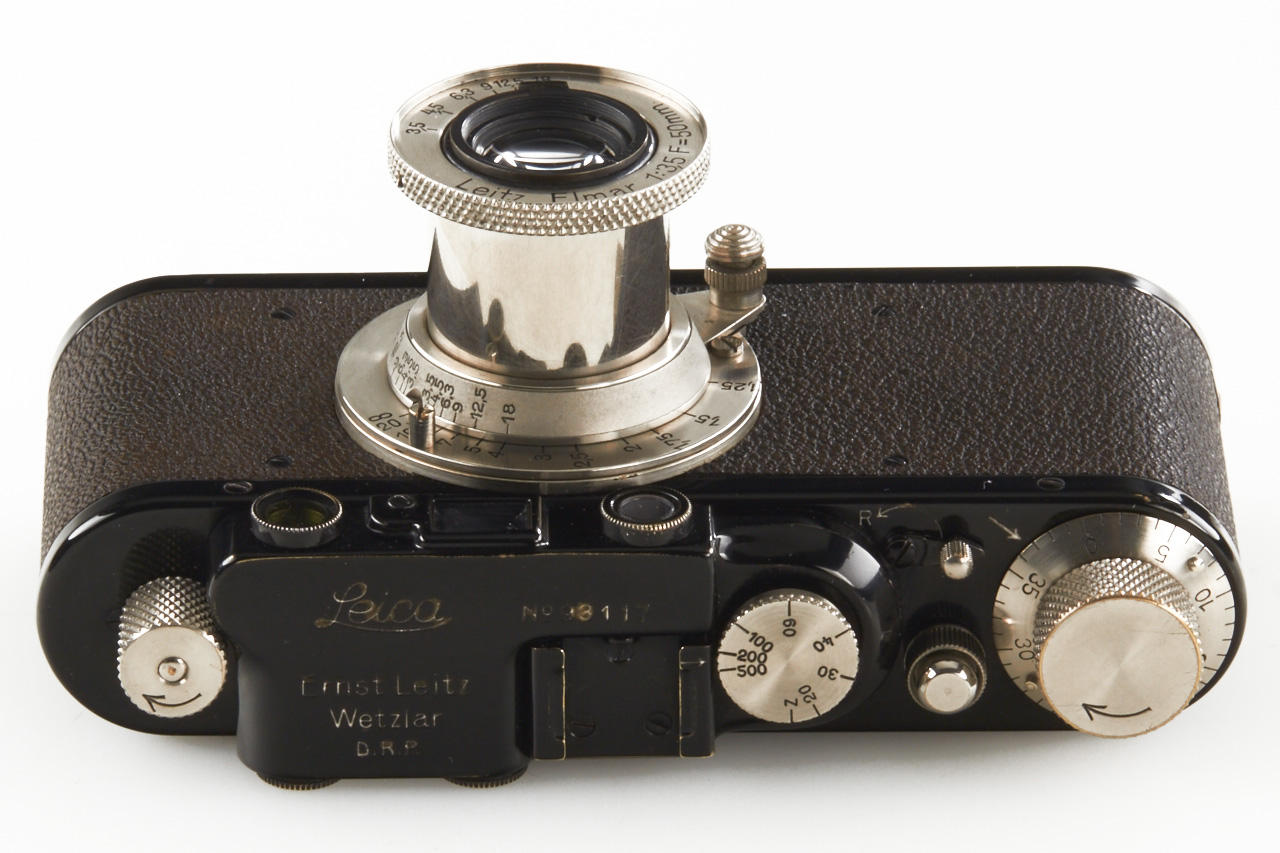 black camera with nickel fittings in beautiful, never restored condition, with matching nickel Elmar 3.5/50mm no.143610, bakelite cap
