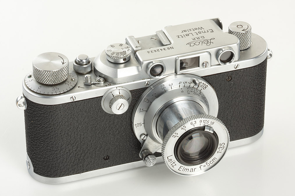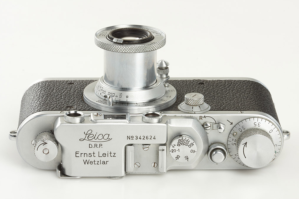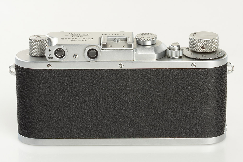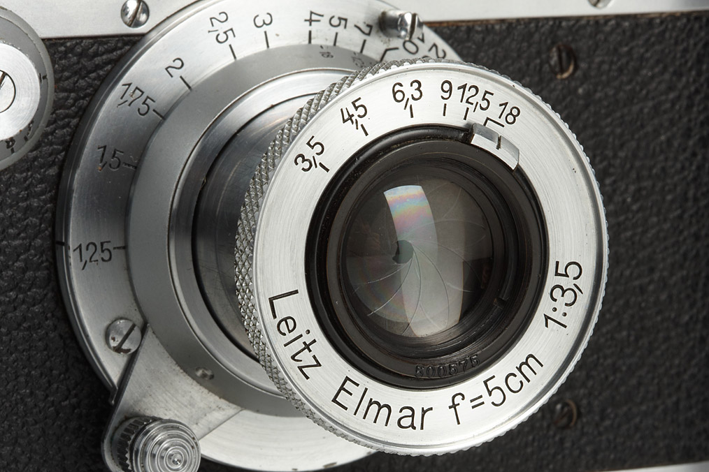 war-time body in fine and perfect working condition with matching uncoated Elmar 3.5/5cm no.500575 (meter scale, cap), everready case, chrome VIDOM viewfinder