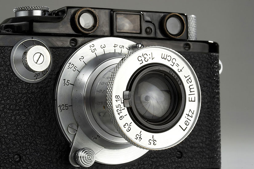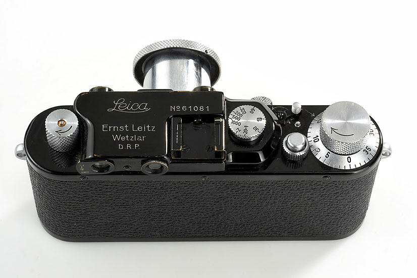 this is a very rare IIIa in black with chrome knobs, originally the number belonged to a Leica IC, no official IIIa black is known to exist, but there are some cameras with serial numbers of earlier models, the camera is in very good working order with Elmar 3.5/5cm no.436110, cap
