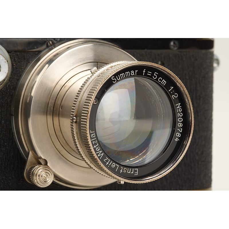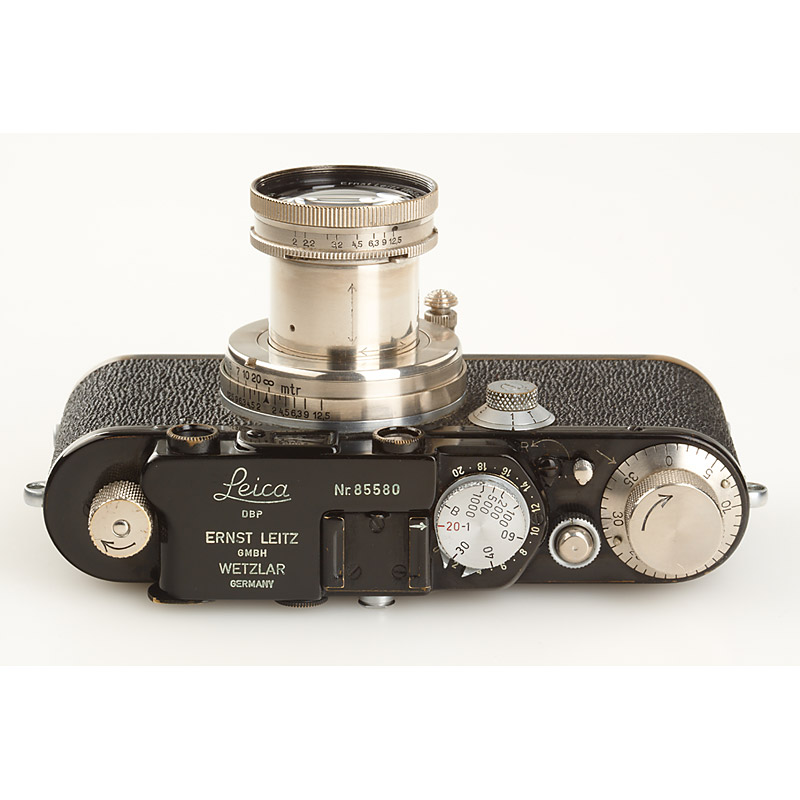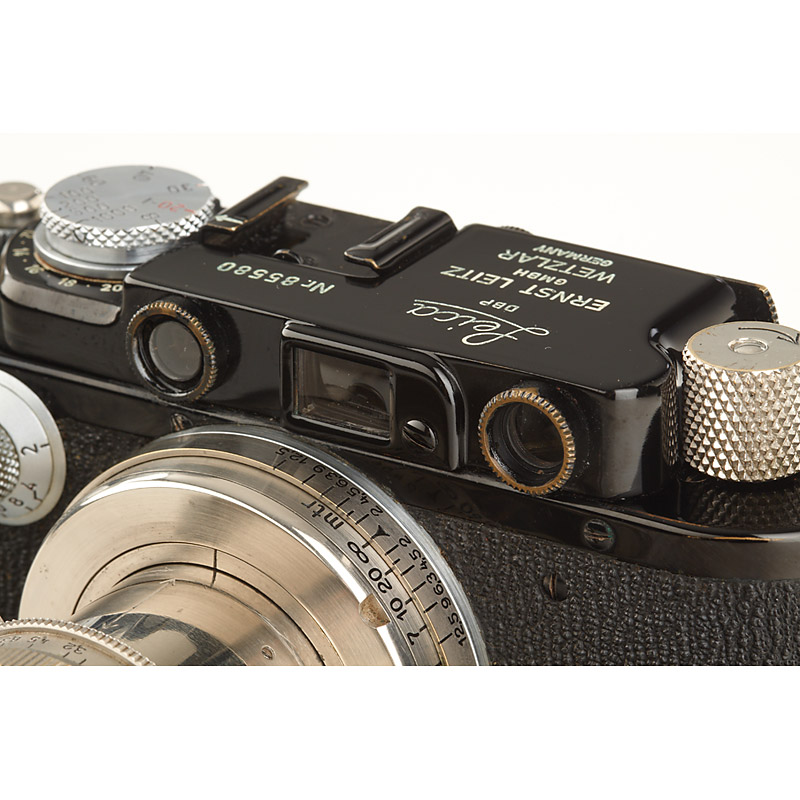 very interesting 1949 conversion of black Leica II with nickel knobs in IIIa syn, sharkskin leather, nickel Summar 2/5cm no.208784