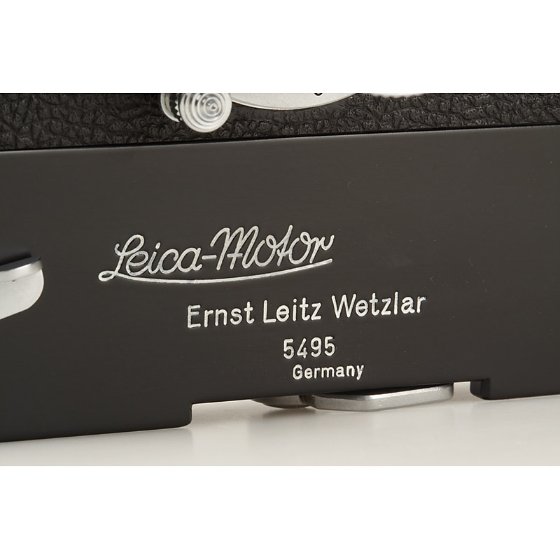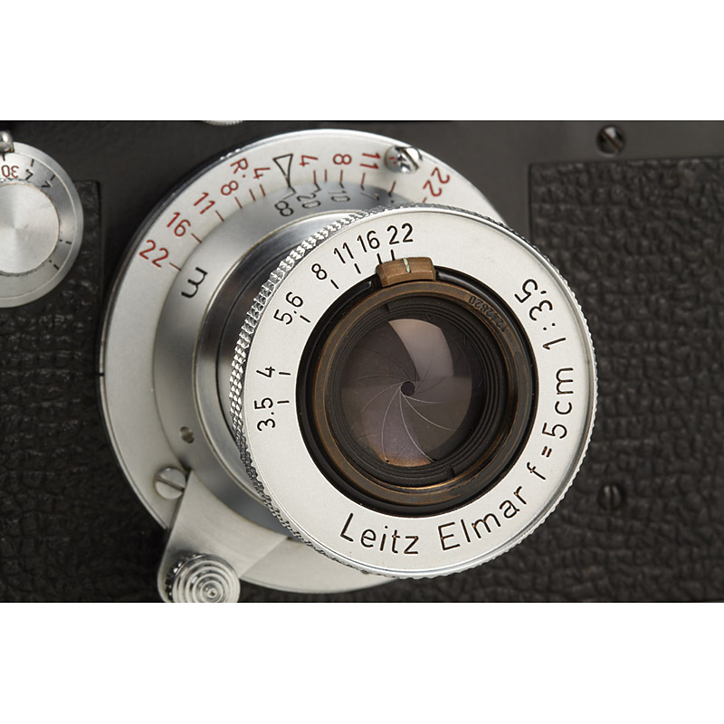 Leica IIIc black paint (fully restored and upgraded to IIIf, small dent above serial number), engraved 'Leitz-Eigentum' in rear of top plate, very rare original camera from a small batch from serial nos. 517396 to 517525, red scale Elmar 3.5/5cm no.1242620 (clean lenses, cap), black MOOLY-C no.5495 (restored)