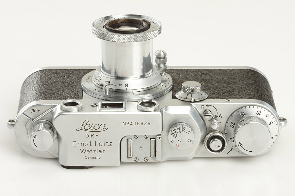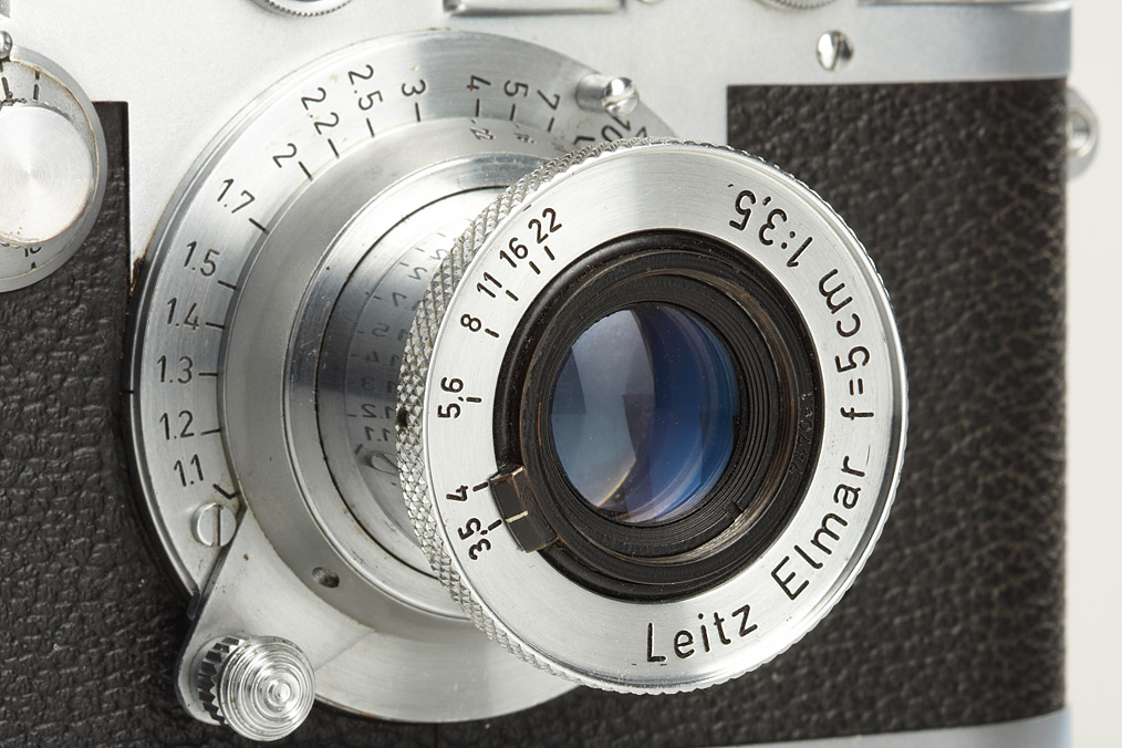 early post-war body in good working order, Elmar 3.5/5cm no.747061, FISON hood, cap