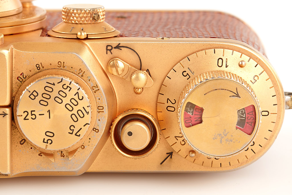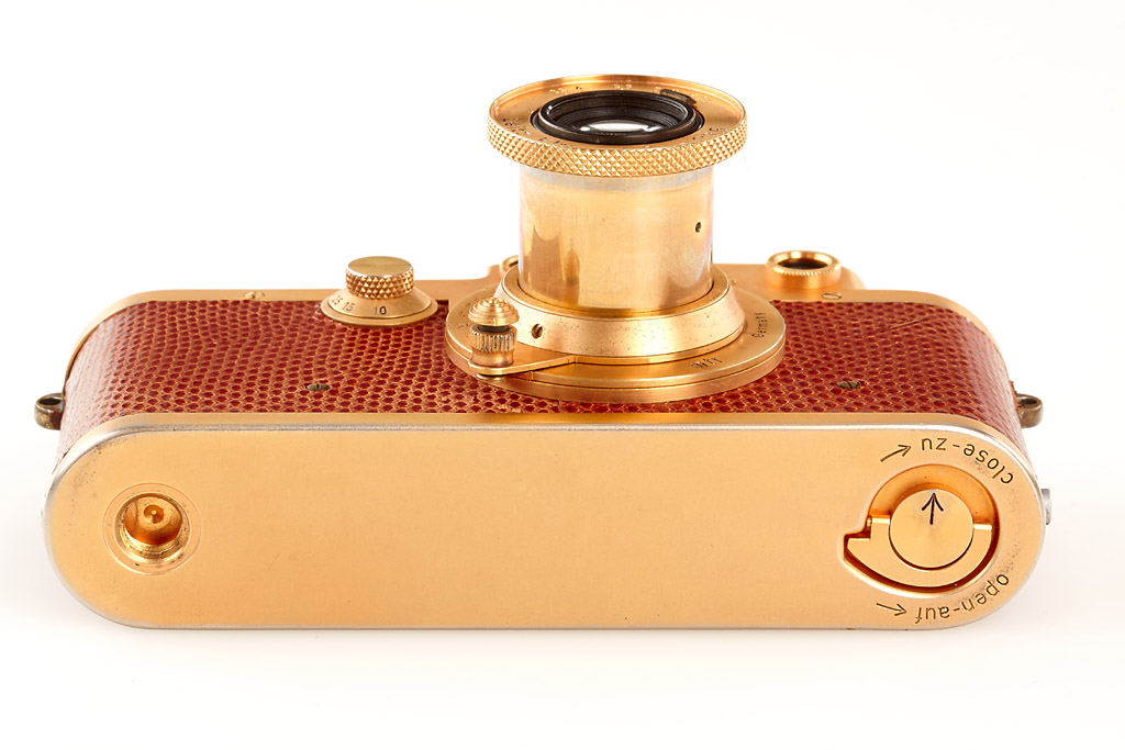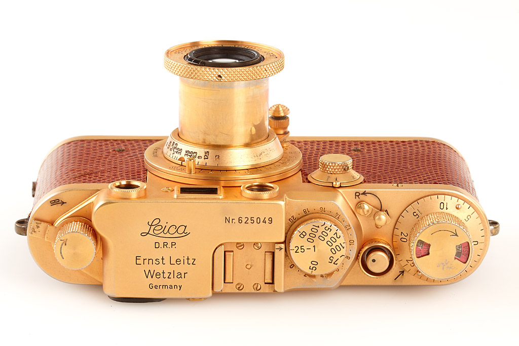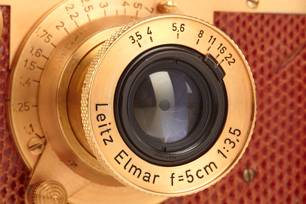 beautifully gold plated IIIc with Elmar 3.5/5cm no.806149, brown covering, in good working order