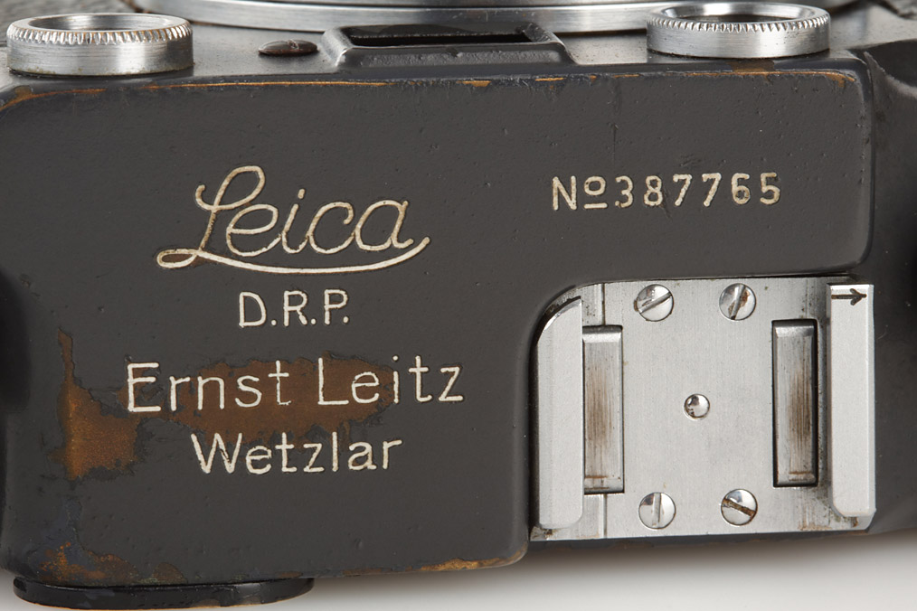 100% original, never restored or repainted grey IIIc (LOOZS grey) with grey leather covering, matching and extremely rare grey MOOLY C no.5236 (only approx. 20 of these motor drives were produced), including the original grey base plate, Elmar 3.5/5cm no.543554 (cap)