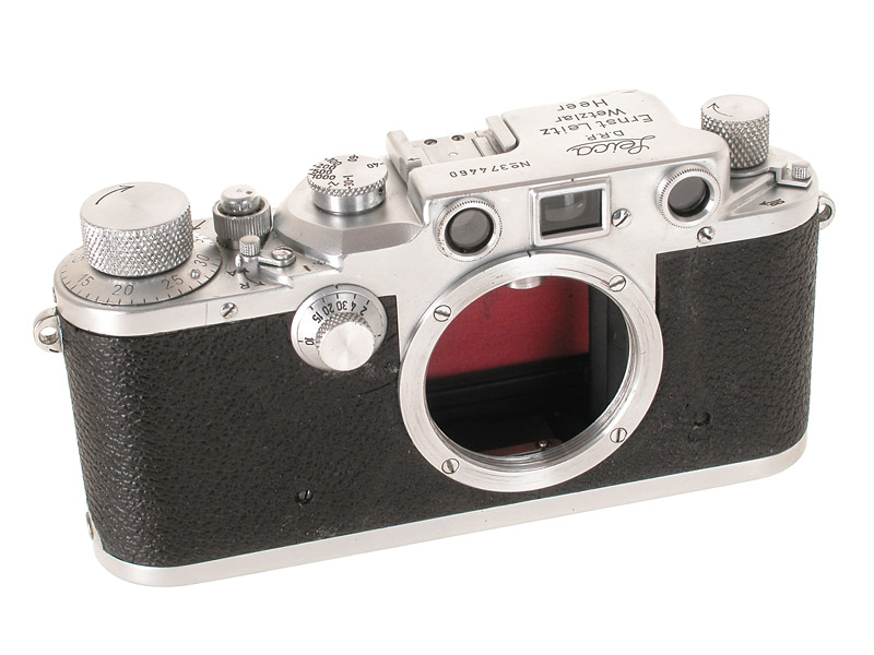 IIIc with original engraving 'HEER' on the top plate, very rare military camera in perfect condition, red shutter. According to the Leitz salesbook this camera (code LOOQA) was delivered with a group of 20 cameras to bln (Berlin) order 25482 on May 24th 1941. Cameras engraved 'HEER' are much less common than 'Luftwaffen Eigentum' cameras, see also: VIDOM no.53