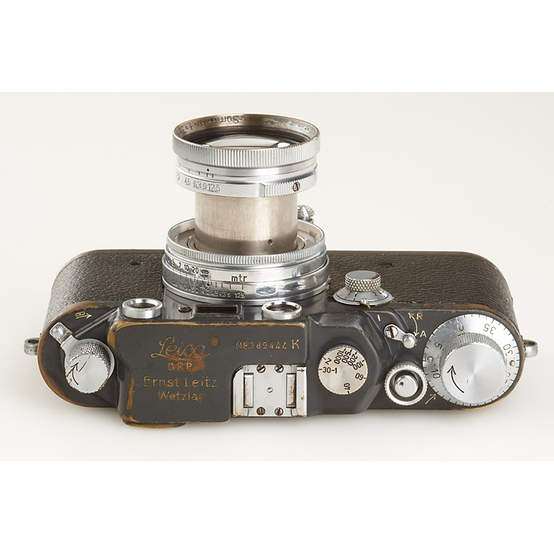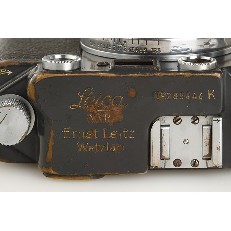 grey painted IIIc K in 100% original condition, grey leather covering, red K on shutter curtain, coated 'Luftwaffen-Eigentum' Summitar 2/5cm no.551131 delivered on October 15th, 1940 to BLN Berlin (delivery number 19151), 'Luftwaffen-Eigentum' engraving defaced