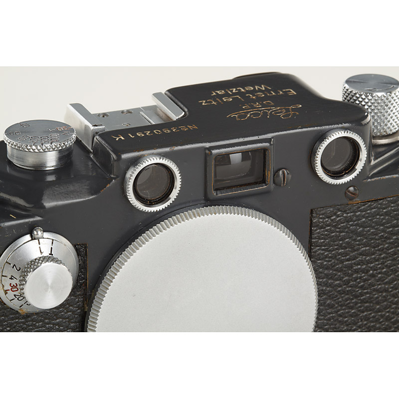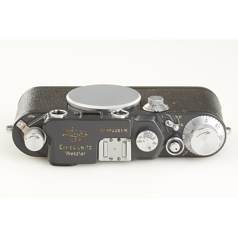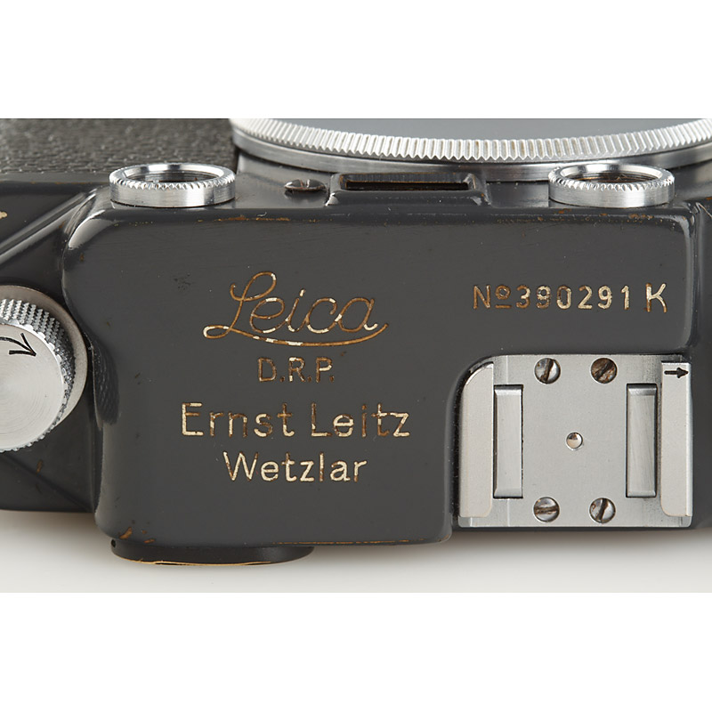 grey painted IIIc K military camera in excellent 100% original condition, grey leather covering, white 'K' on shutter curtain, cap, instruction book, delivered as LOOKX to BLN Berlin on May 5th, 1944 (delivery number 9933)