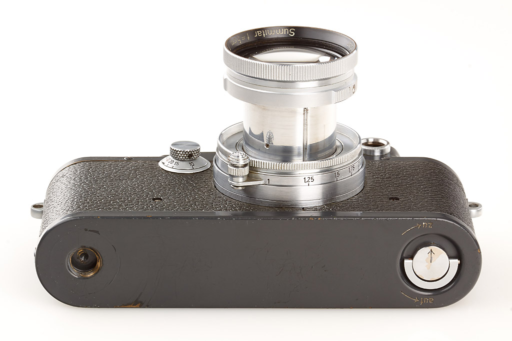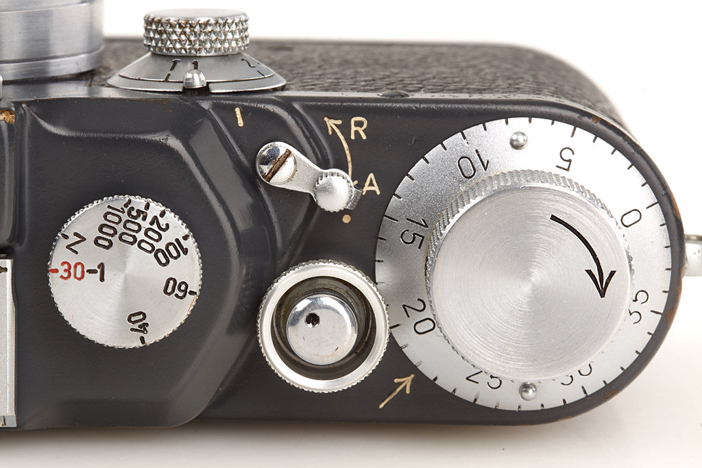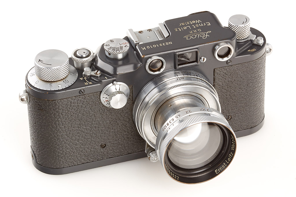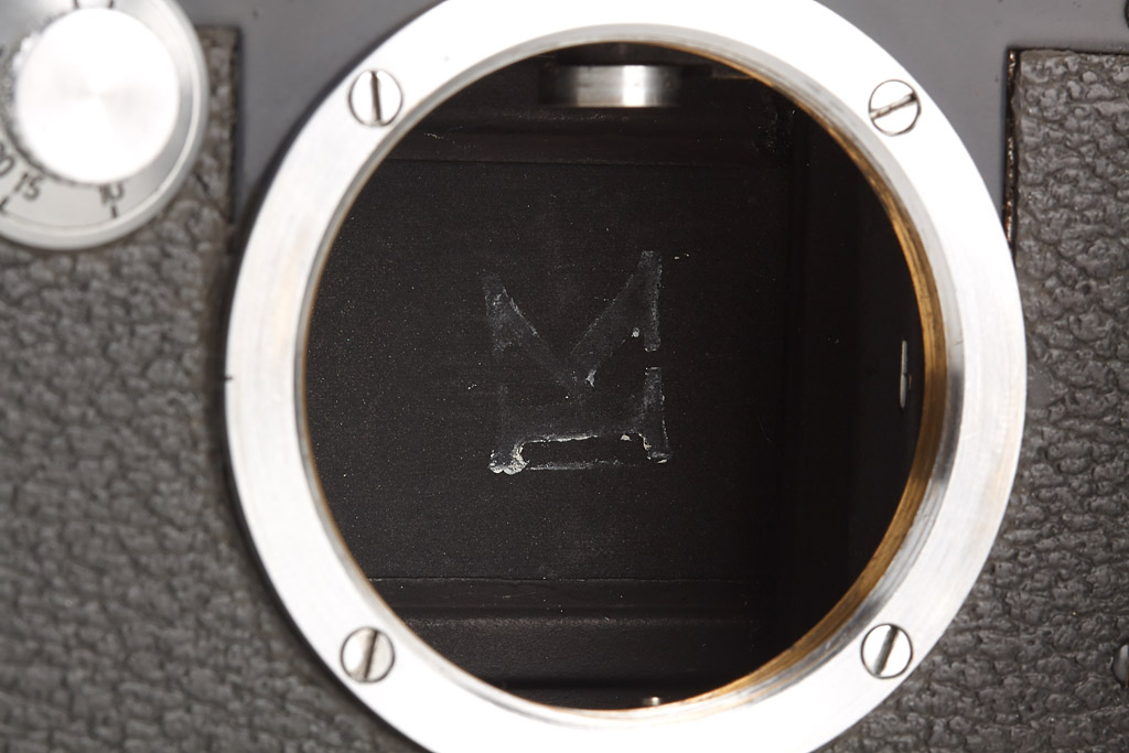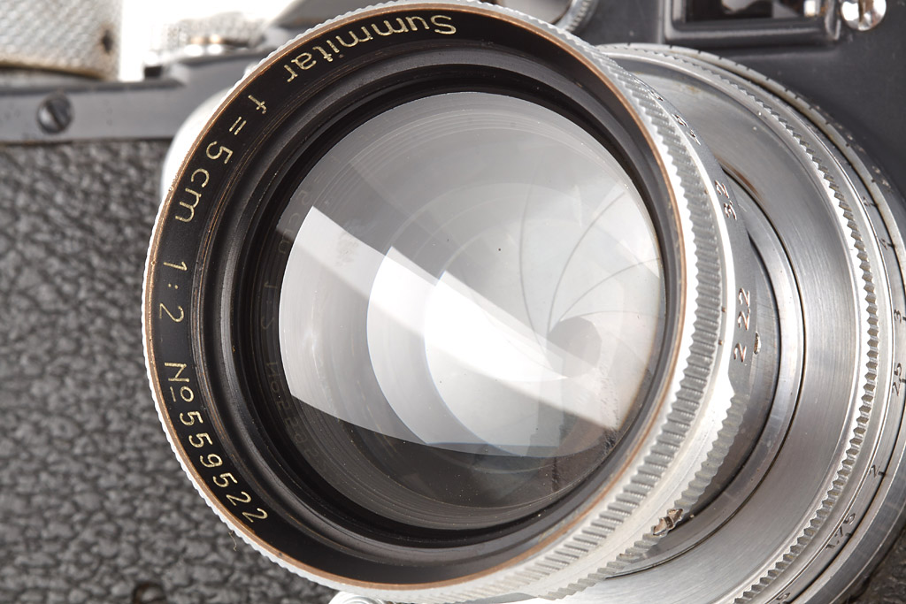 late grey IIIc K in beautiful, original condition (white K on shutter, grey leather covering), with white lettering print on rear for US Army (P.H.S.910 3152), Summitar 2/5cm no.559522 (cap)