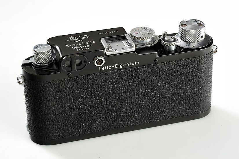 interesting black paint post-war IIIc, engraved Leitz-Eigentum on rear of top plate, synchronised by Leitz in early 50th, same serial number engraved inside the camera