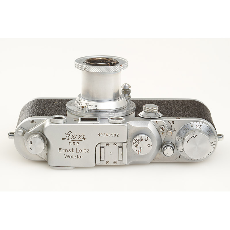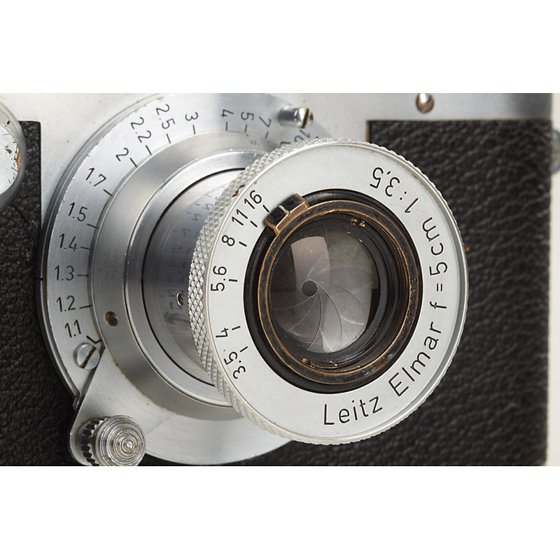 war-time body, first version IIIc in good condition, red shutter blind, matching Elmar 3.5/5cm no.574412 (cap)