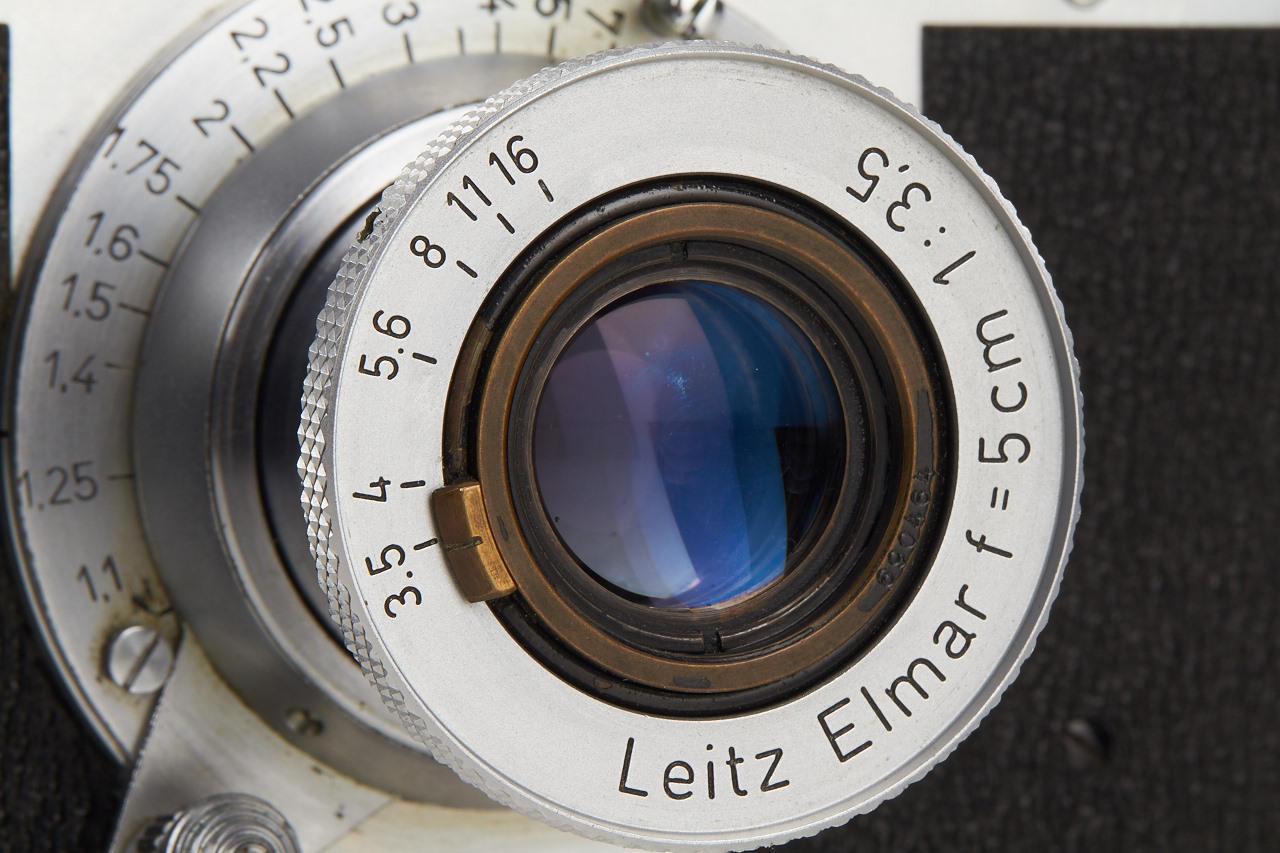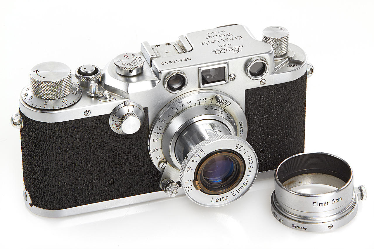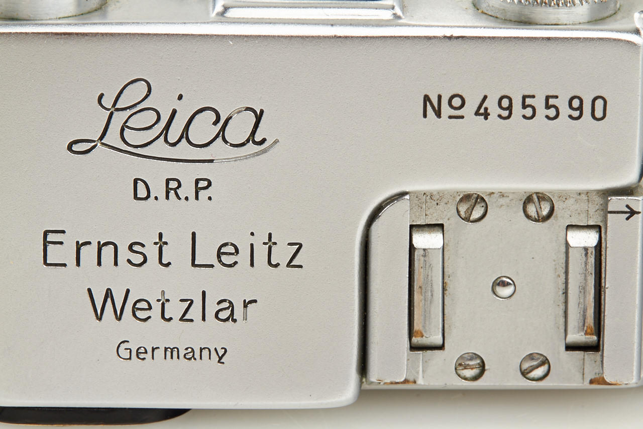 post-war IIIc with sharkskin covering in very nice condition, matching Elmar 3.5/5cm no.690464, FISON hood
