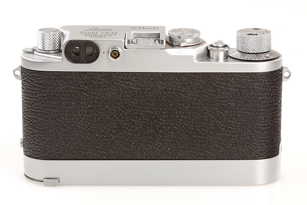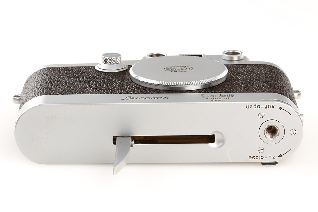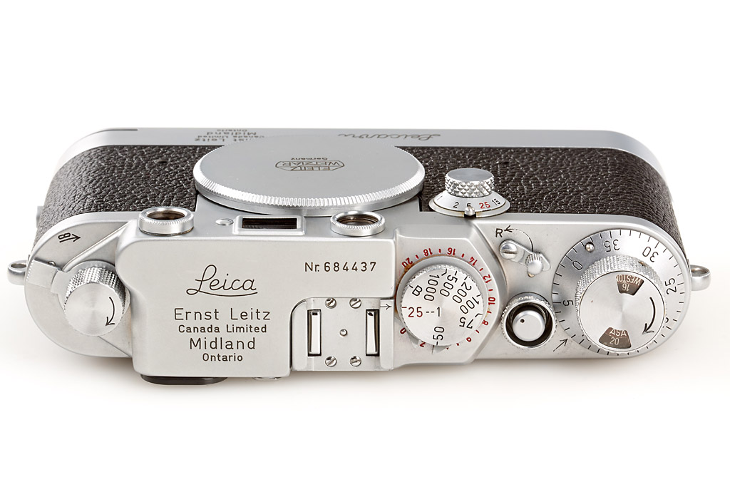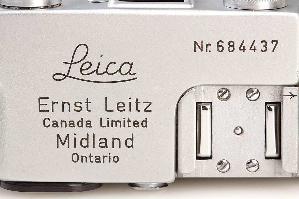 very rare and fully original IIIf without self timer, top plate engraved 'Ernst Leitz Canada Limited Midland Ontario', with matching Leicavit engraved 'Ernst Leitz Canada Limited Midland Ontario' - both camera and winder in perfect and working condition, with rare body cap engraved 'E.LEITZ WETZLAR Germany'