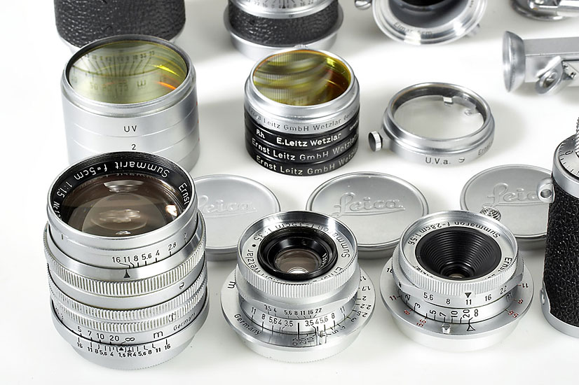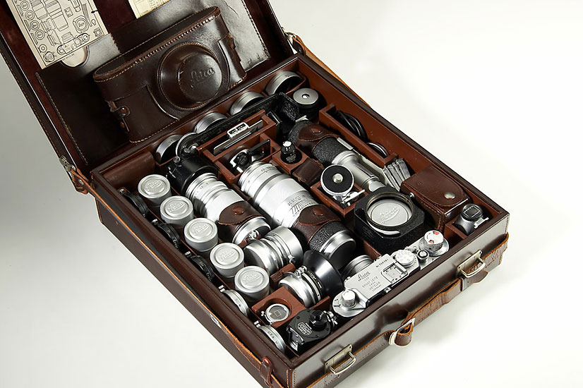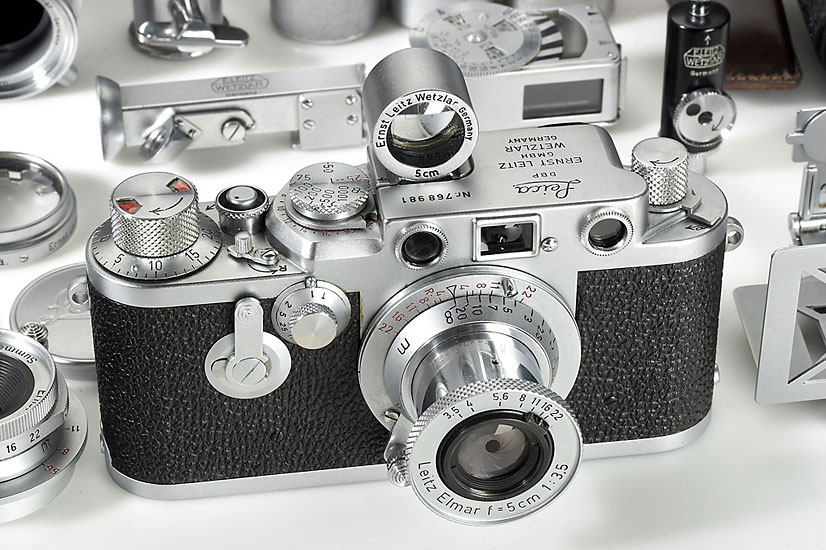 fantastic and near mint, complete outfit in case EKOOZ including: IIIf no.768981 red dial with self timer, red scale Elmar 3.5/50mm no.1322133, Summaron 5.6/28mm no.1363494, Summaron 3.5/35mm no.1307793, Summarit 1.5/50mm no.1331951, Elmar 4/90mm no.1286693, Hektor 4.5/135mm no.1345056, hoods for all lenses, VIOOH finder no.48377, 5cm finder SBOOI, 2.8cm finder SLOOZ, ROSOL frame finder, WINTU RA finder, NOOKY close-up attachment, FOOMI ball and socket head, CEYOO and CTOOM flash attachment, APDOO self timer, Metraphot meter with leather case, 5 reloadable cassettes in aluminium containers, 5 Summarit filters, 5 A36 filters, rear and front caps for all lenses, ever ready case for IIIf - all accessories and lenses in near mint condition!