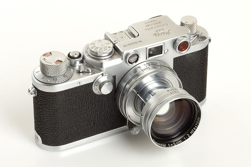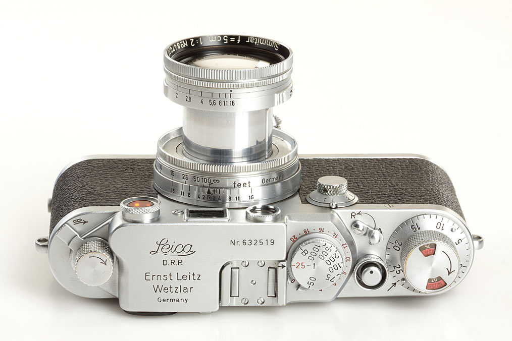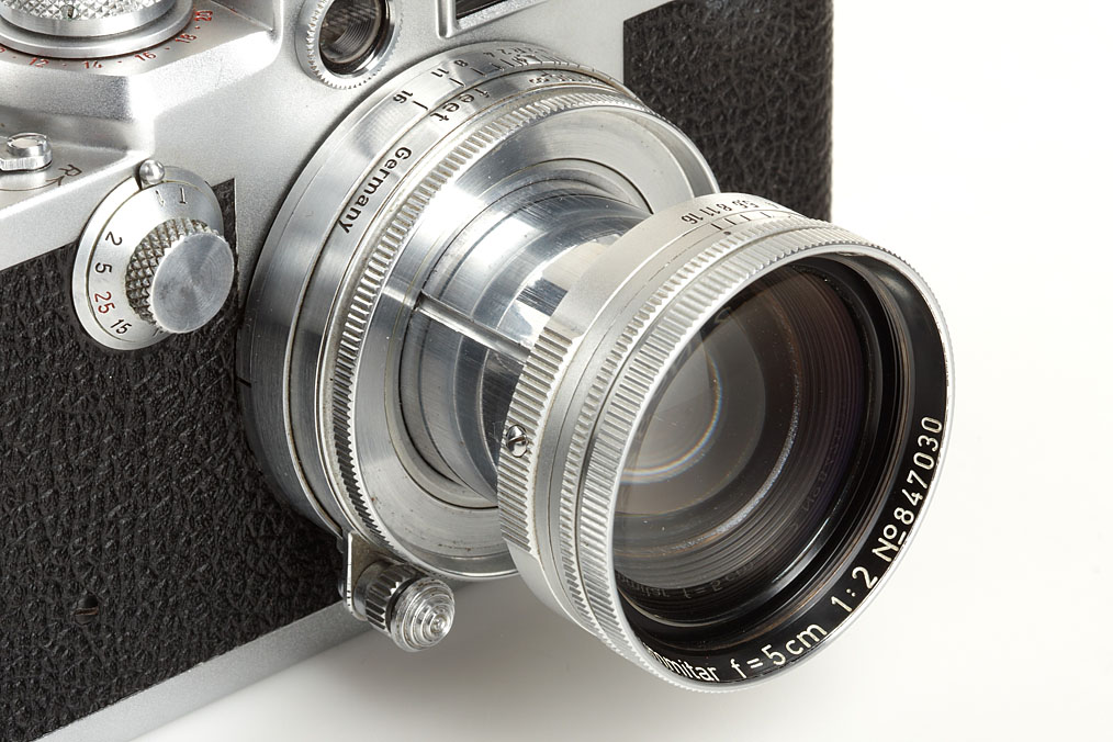 red dial body in good working order with OKARO rangefinder orange filter, Summitar 2/5cm no.847030 (cap), SOOFM hood, ever-ready case, Elmar 4/9cm no.1035580 (both caps, keeper), VIOOH universal finder no.24080 with straight sides (case), OSBLO telescope adapter