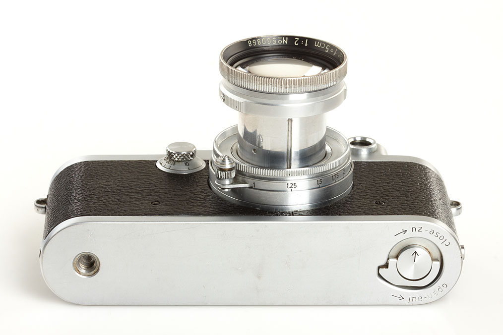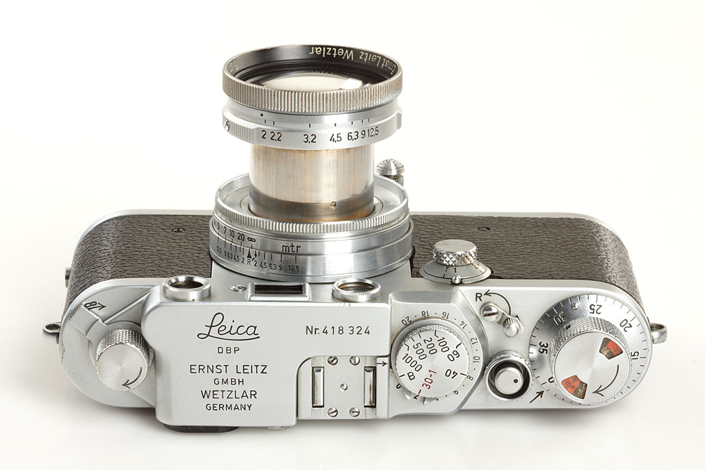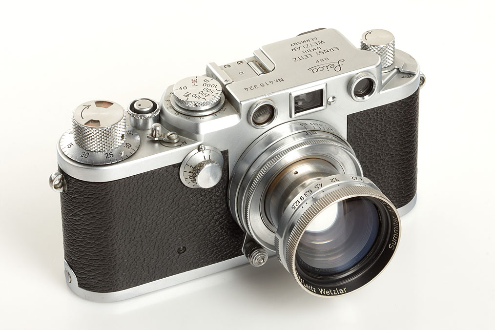 converted early post war IIIc in good working order, with matching Summitar 2/5cm no.560868, meter scale, cap, ever-ready case, CEYOO flash unit in maker's box and CTOOM flash bracket