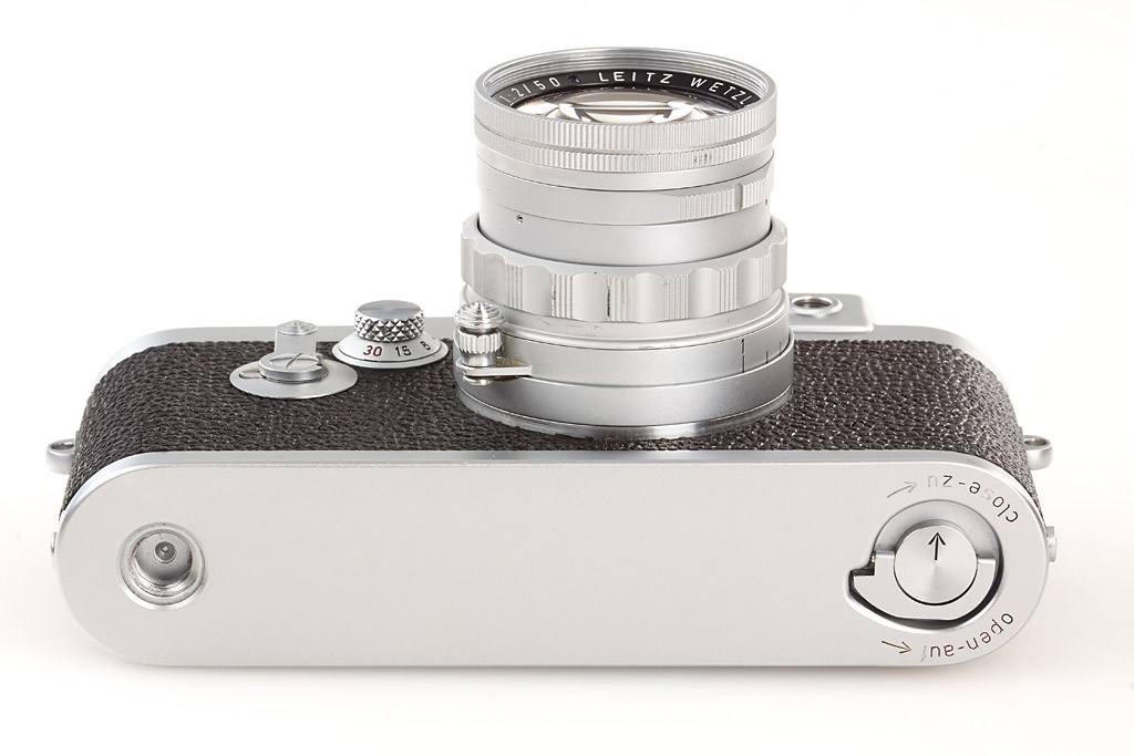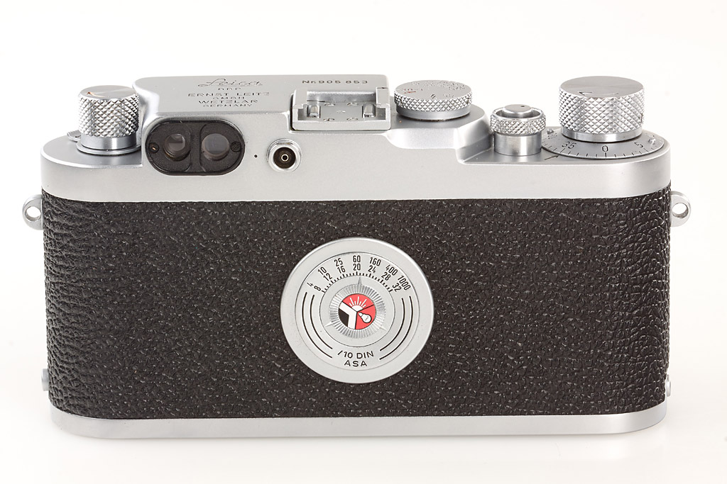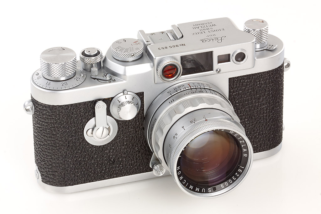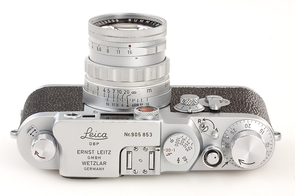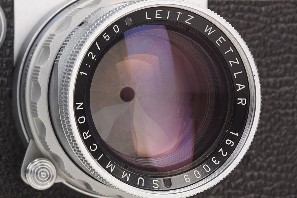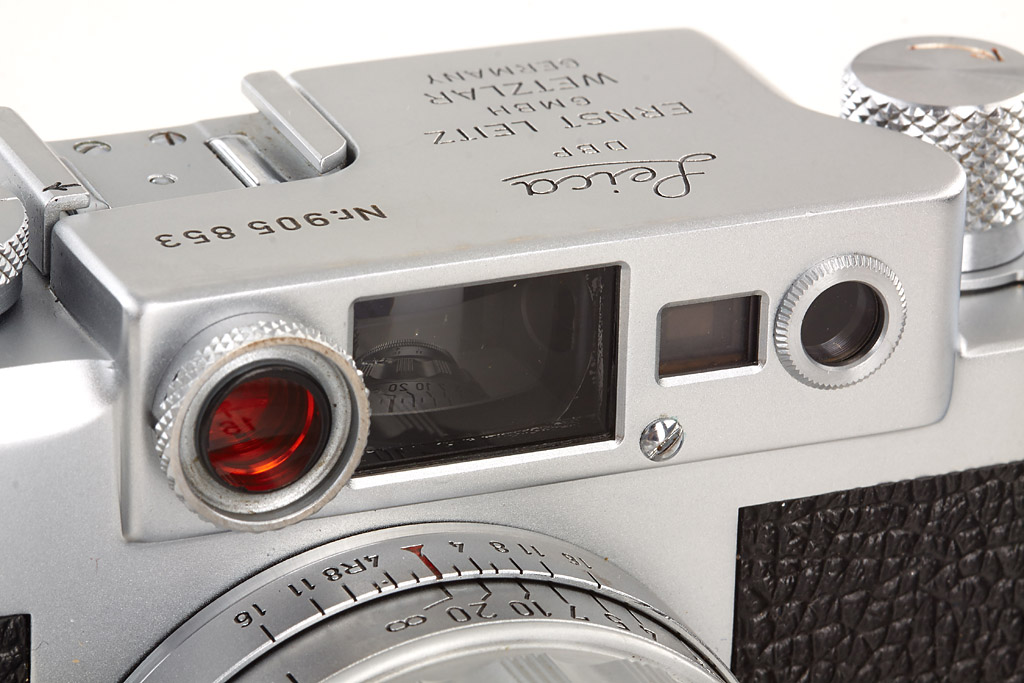 body in very fine condition (OKARO RF orange filter) with rare rigid Summicron 2/50mm (slightly hazy, cap), everready case) and rare 3-element Elmar 4/90mm no.1913083 (clean lenses, UVa filter, leather replaced, keeper)