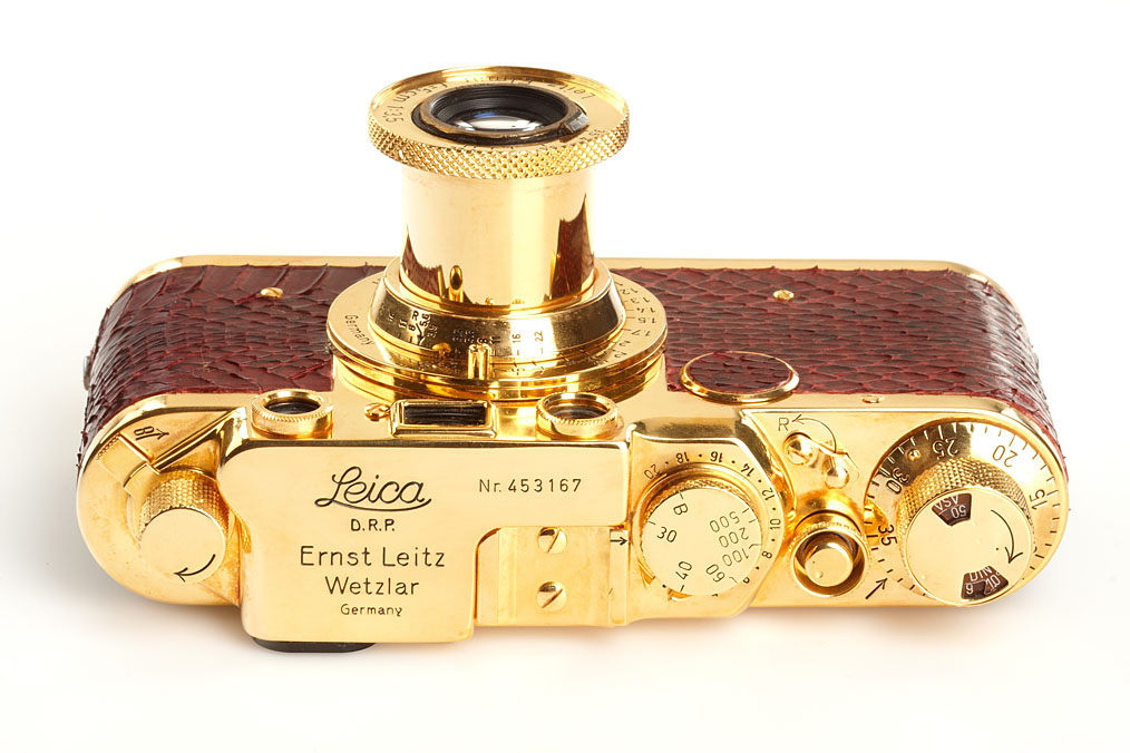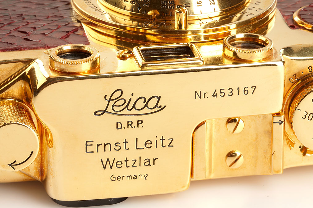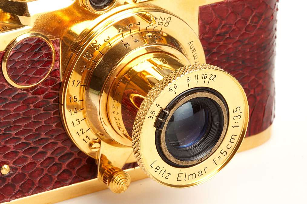 beautifully made with red/brown reptile leather, Elmar 3.5/5cm no.907137