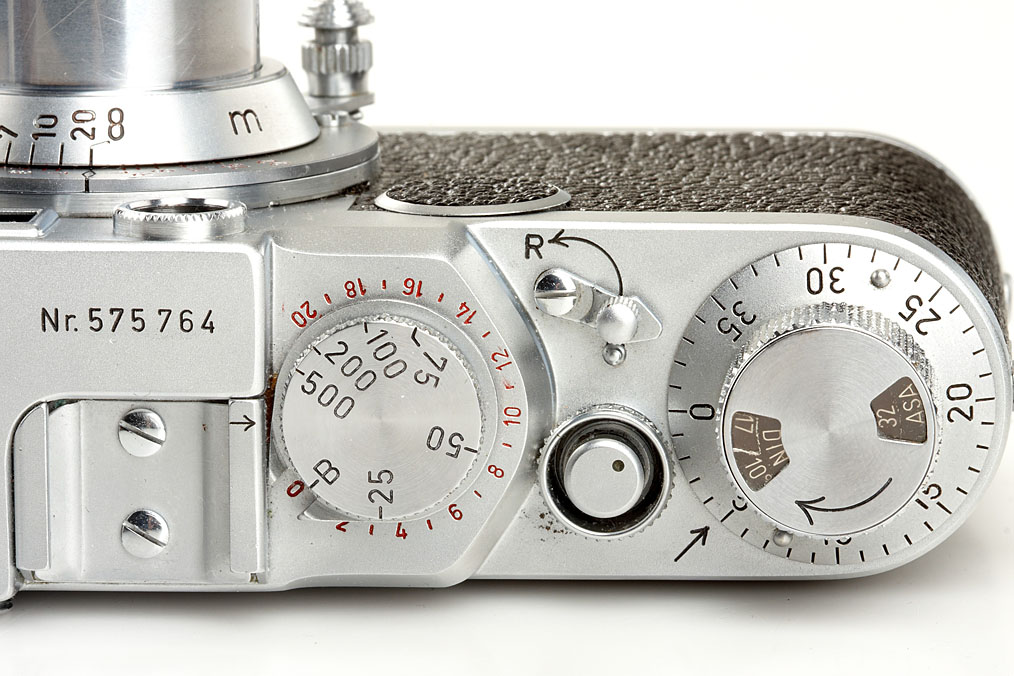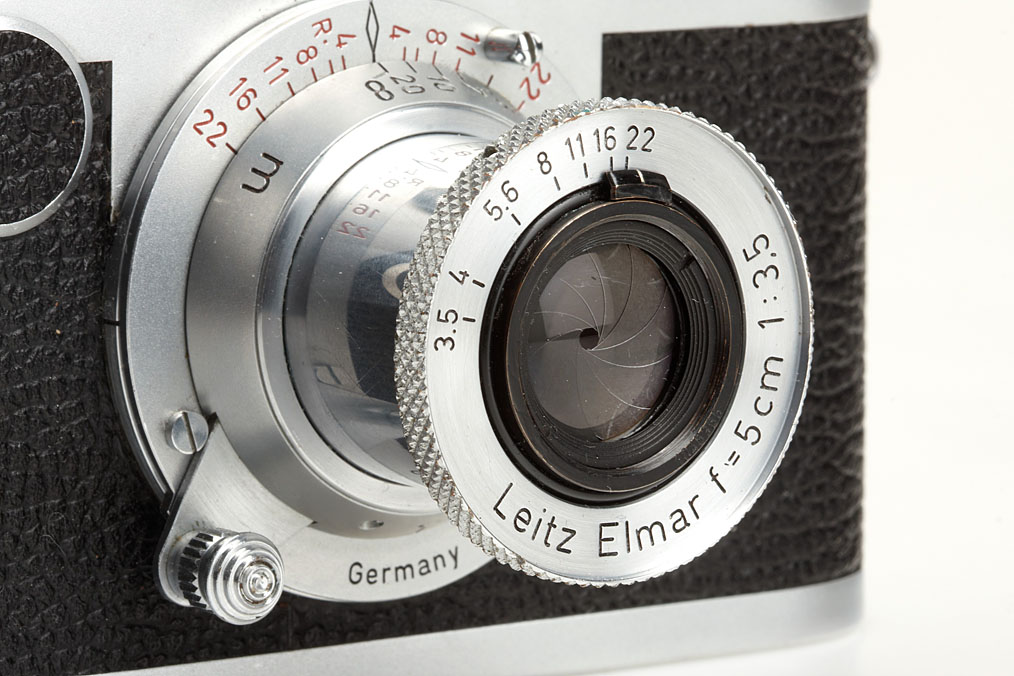 excellent body (only the base plate shows some signs of wear) with matching red scale Elmar 3.5/5cm no.1045366, cap, FISON hood, ever-ready case