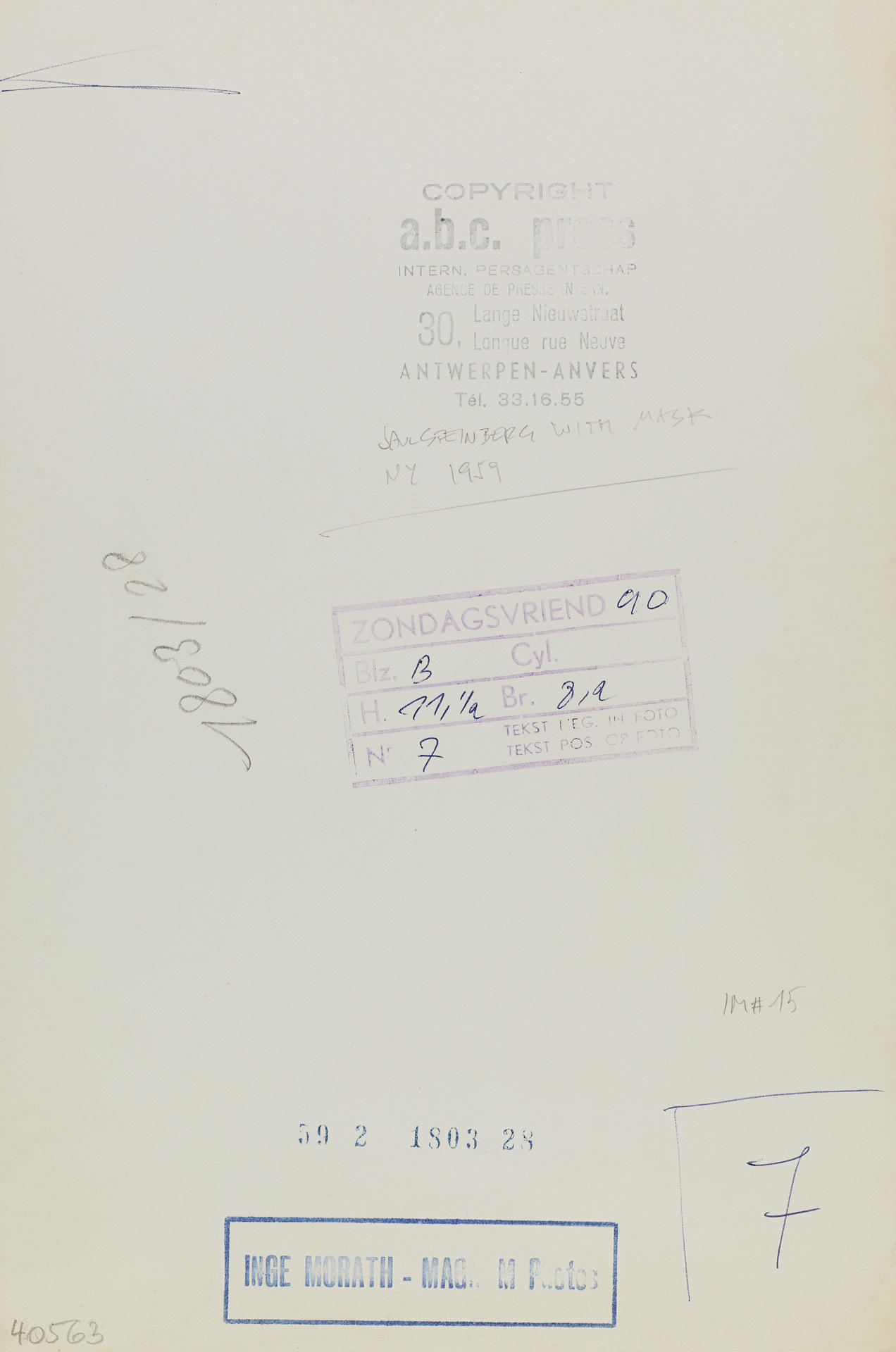 Vintage silver print 25,1 x 16,8 cm Photographer's agency stamp, several press stamps and handwritten notations in unidentified hands in pencil on the reverse