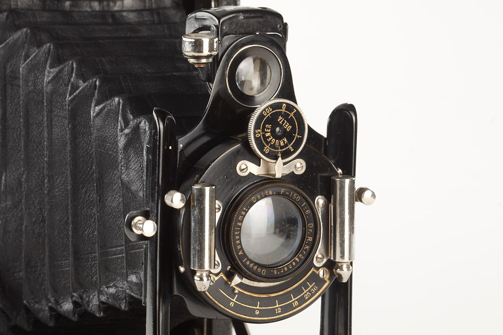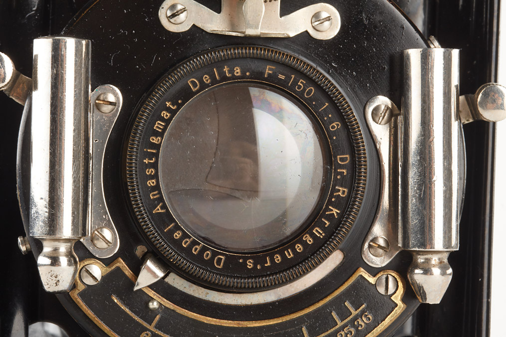 (1) Lloyd 510 no. H 53203, 8x10.5cm with Tessar 6.3/13.5cm, Compur shutter, double extension, (2) Lloyd 575 no. D 64626, 9x14cm with Dr. R. Krügener's Delta shutter, combination of Ica body and Dr. Krügener lens + shutter (1909), comes with one original box 'Ica Ideal', 4 Ica darkslides 738/13, 3 Ica darkslides, 1 Ica filmpack, cases (2)