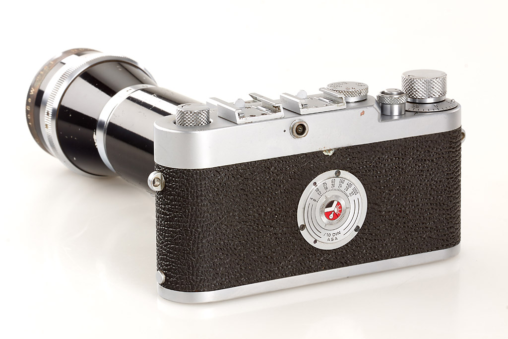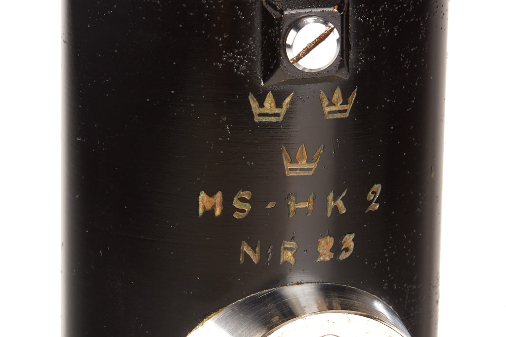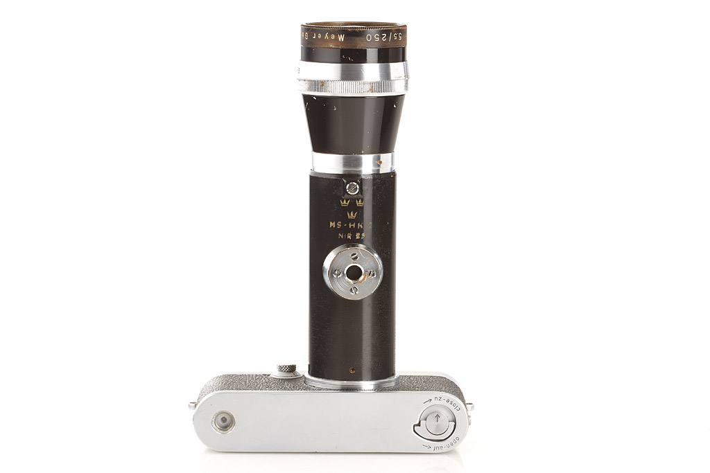 100% original military set, the only known Ig outfit for the Swedish Army (delivered on September 25th, 1959 to Brandt, Stockholm), with matching Meyer Tele Megor 5.5/250mm no.1001748 engraved with 3 crowns and MS-HK2 N:R 25, original hood with built-in yellow filter, modified SFTOO 20cm finder and two spools, all in original outfit case - one of the most interesting military outfits !