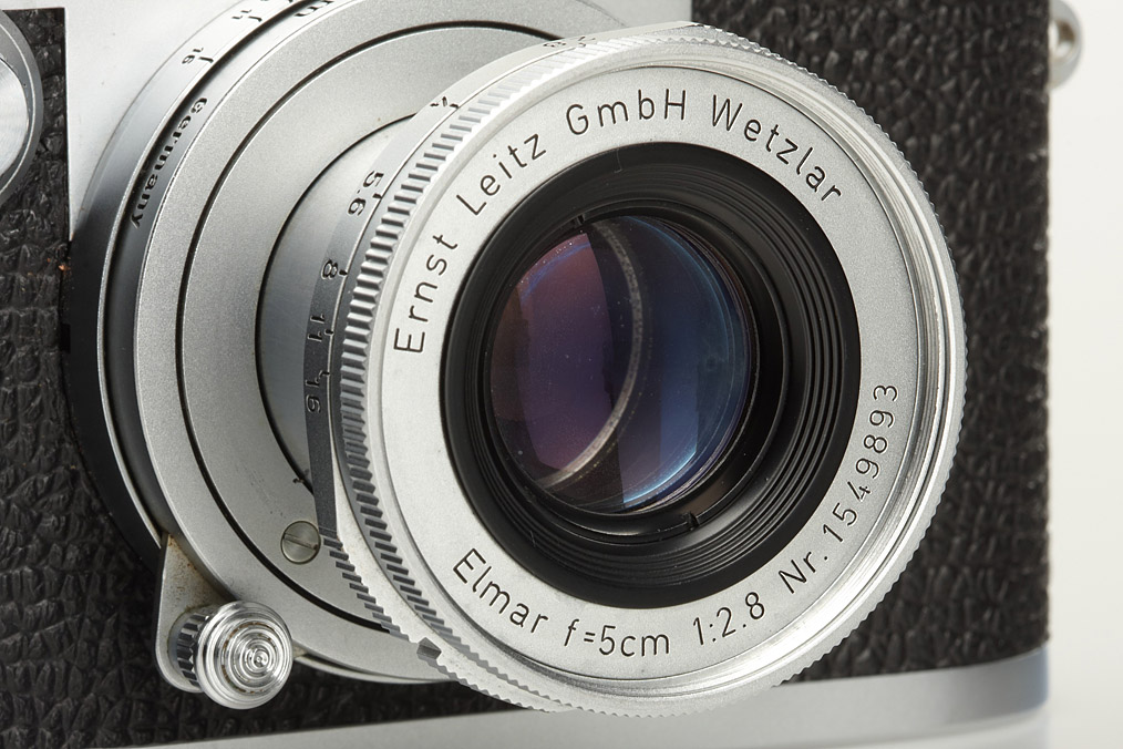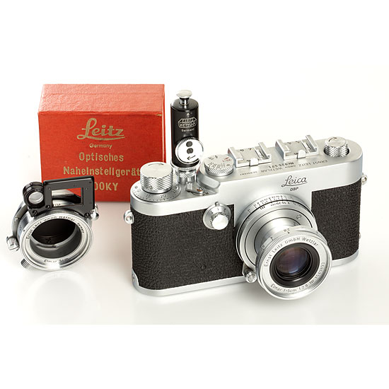 near mint body in good working order, Elmar 2.8/5cm no.1549893 (cap), APDOO selftimer, NOOKY close-up attachment with cap, in maker's box