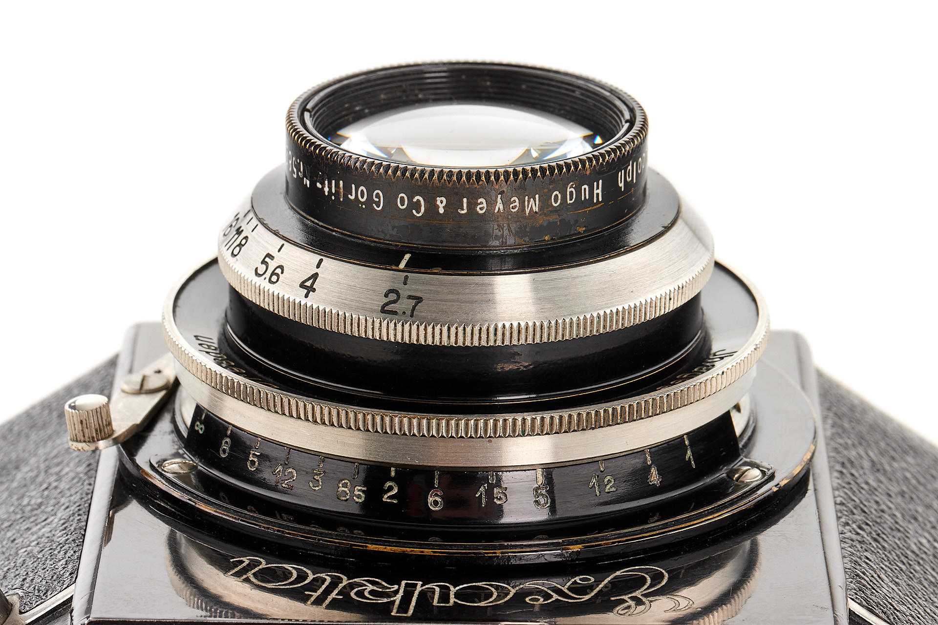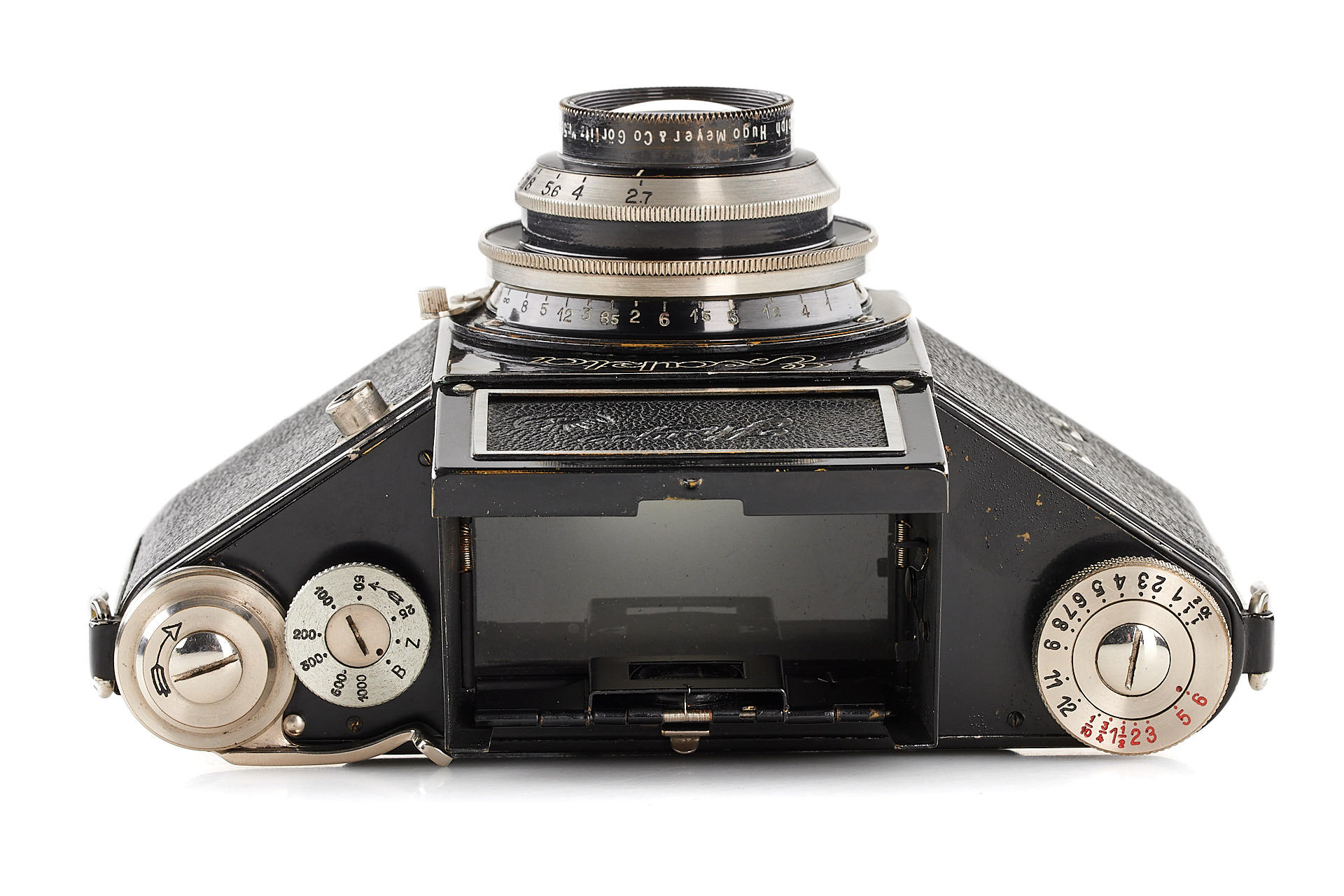 4th version (1st type) Exakta B in very good condition, with sought-after Meyer Makro Plasmat 2.7/7.5cm no.582962 with good optics