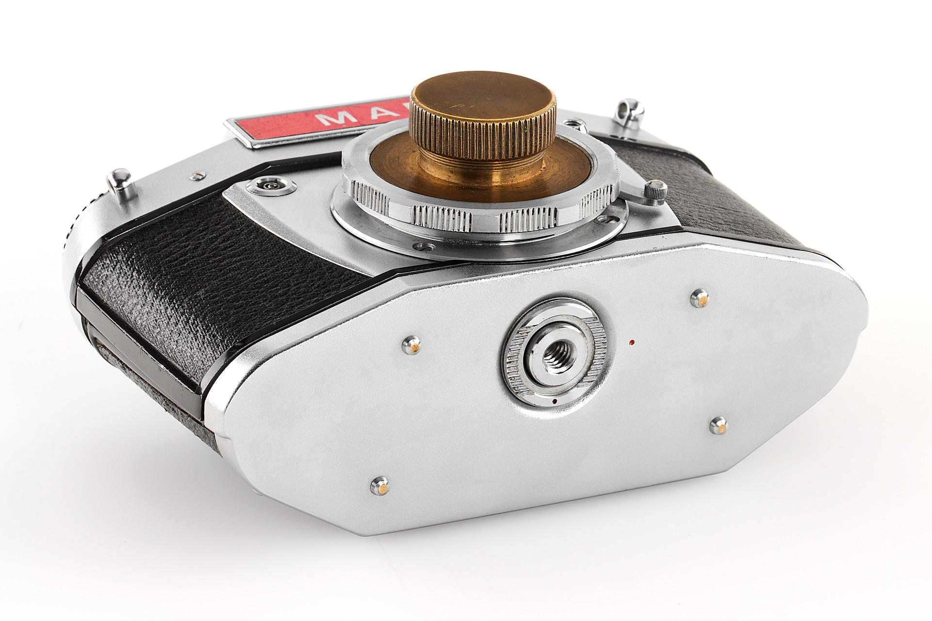 probably unique Ihagee MAF, identical to the early EXA Ia version 2 but for 22x24mm on 135 film, in very good condition, reference '0017' hand graved on the bayonet, with interesting "body cap" with custom brass opening (unknown purpose)