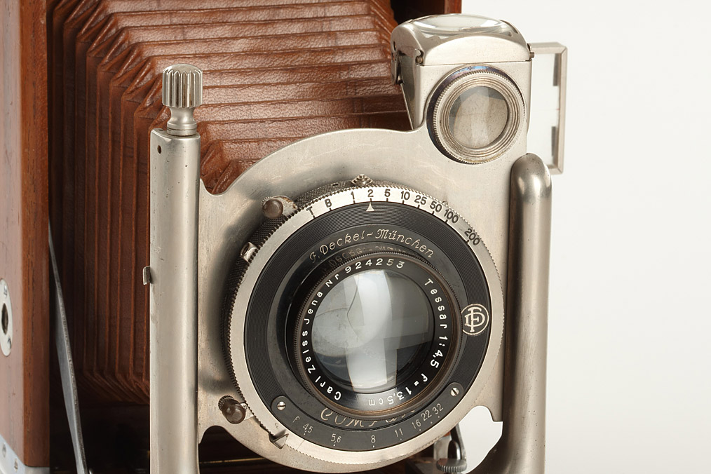 9x12cm, teak body with brass and chrome fittings, Tessar 4.5/13.5cm no.924253 in Compur shutter