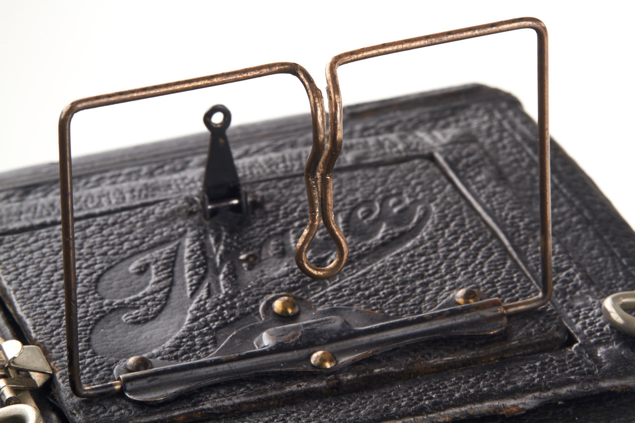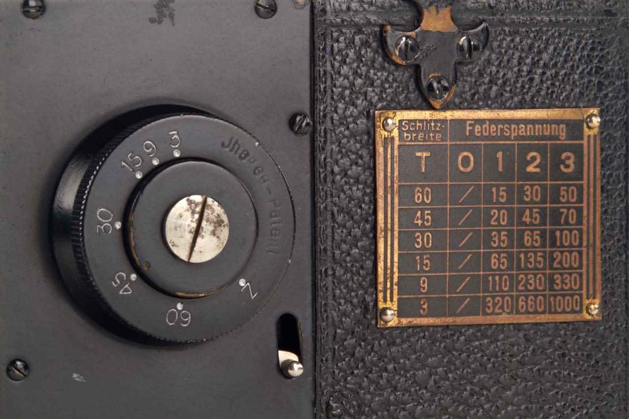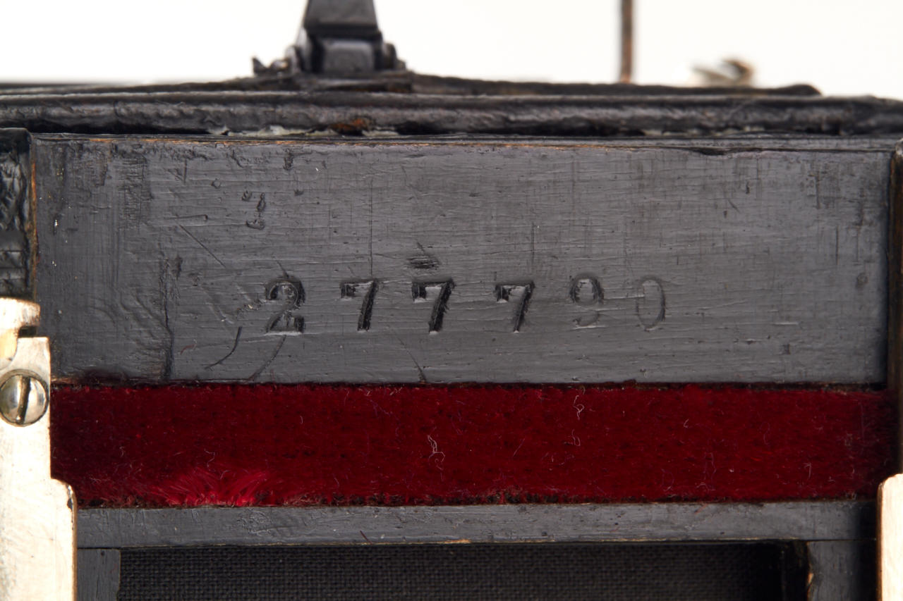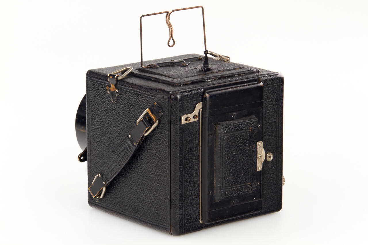 4.5x6 with Hugo Mayer Plasmat 1.5/9cm no.464287, focal-plane shutter 1/15-1/1000, extremely rare, the other known camera was sold at WestLicht in 2002. This beautifully made wooden leather covered reflex camera (Nachtreflex) is in fantastic original condition, the lens is clear and clean.