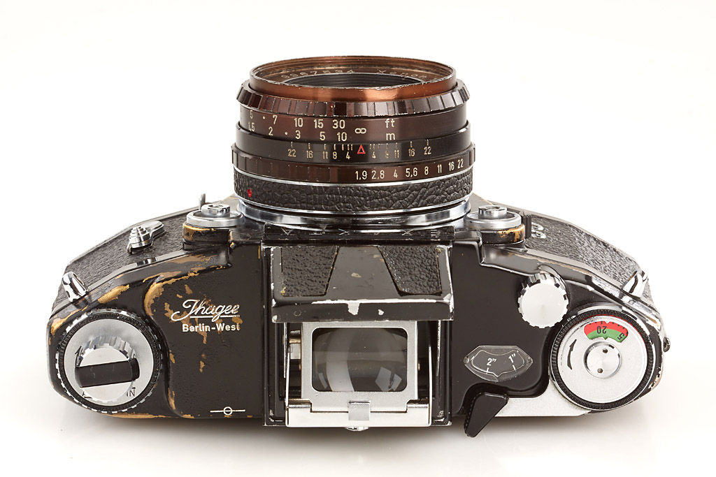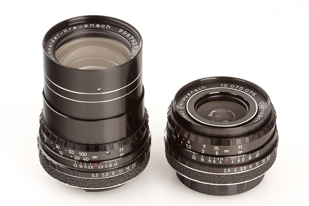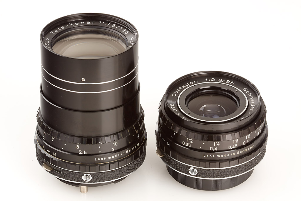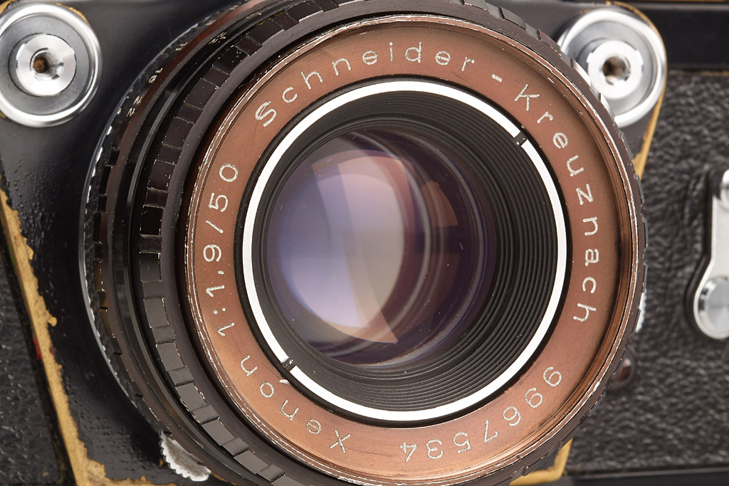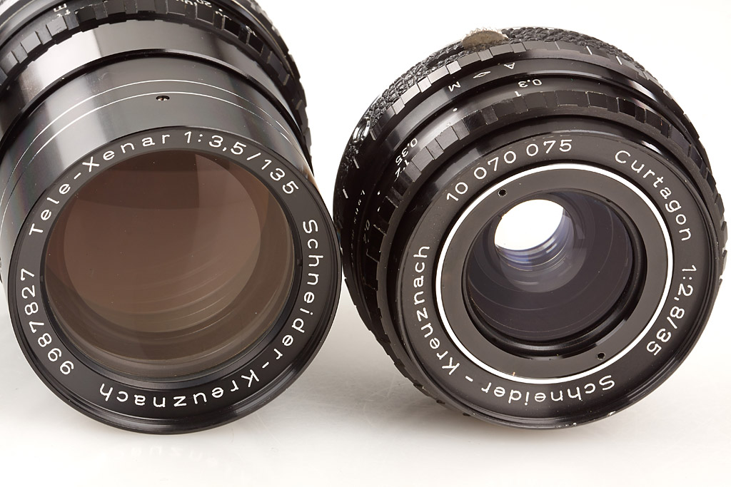 black unnumbered rare camera in heavy used condition (not operable) with 3 matching lenses (all in near mint condition): Xenon 1.9/50mm no.9967534, Curtagon 2.8/35mm no.10070075 and Tele-Xenar 3.5/135mm no.9987827