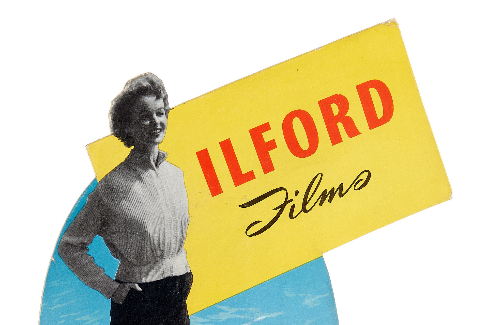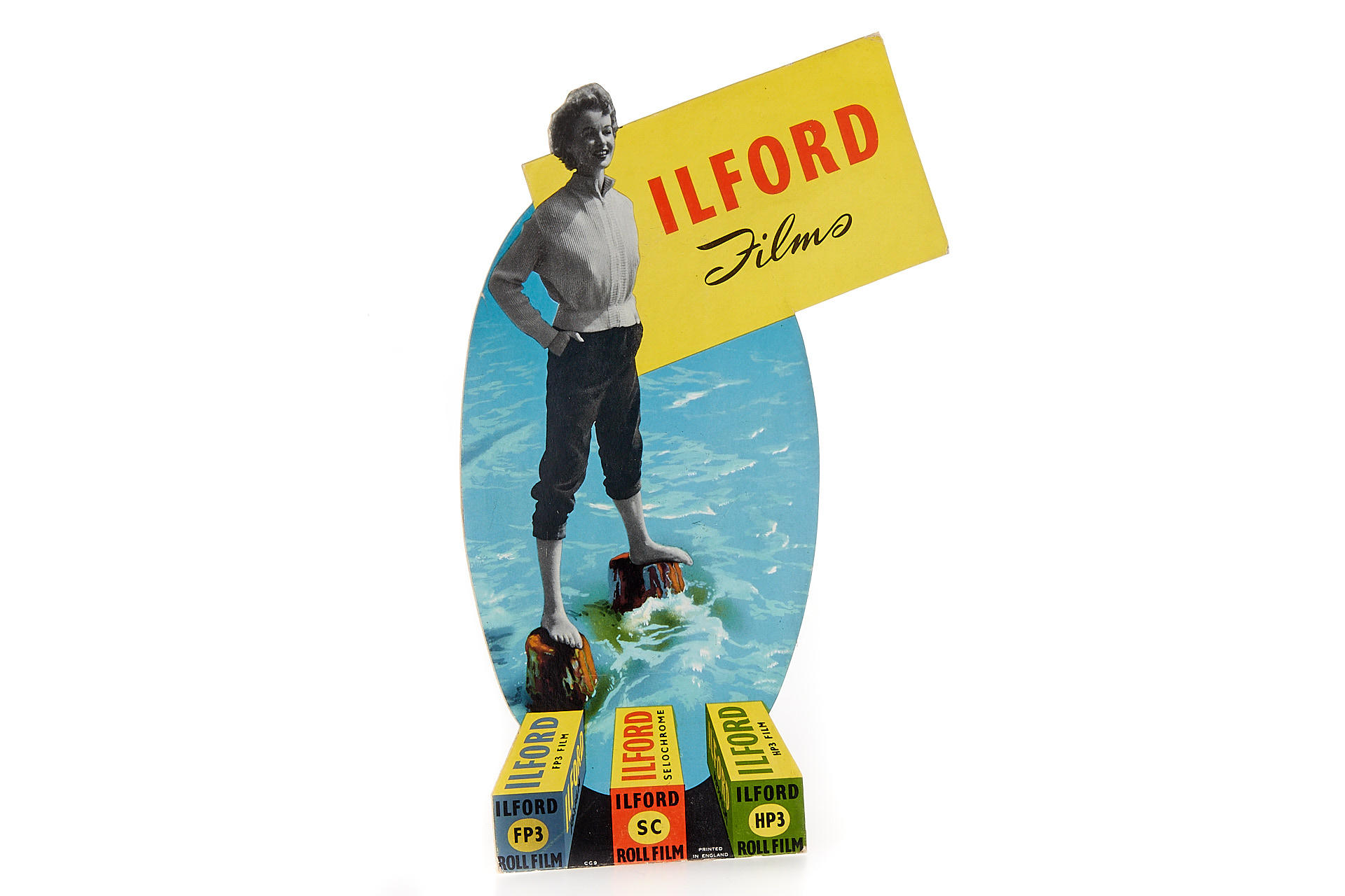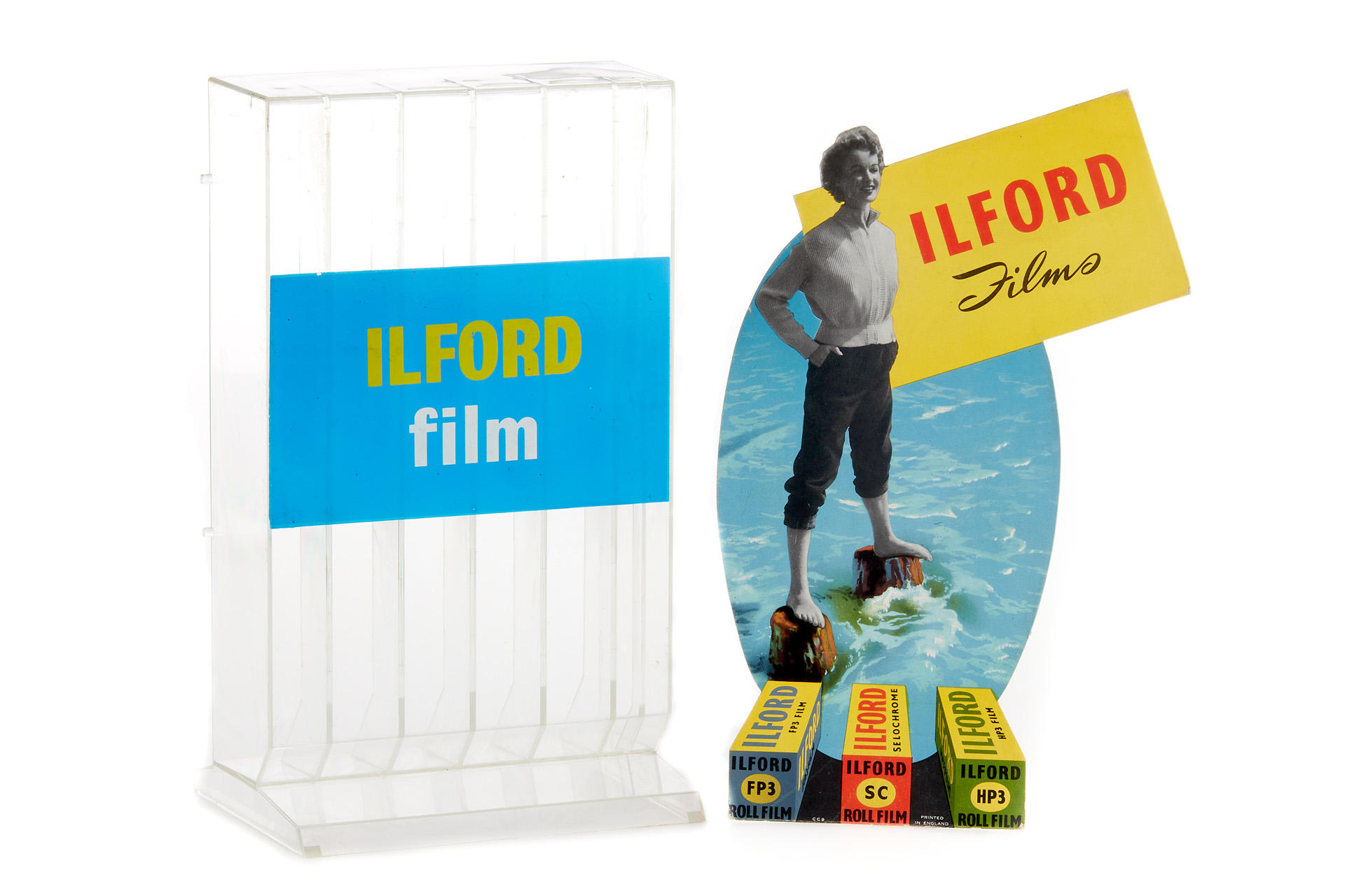 Very nice counter sign in near mint condition, c.37cm printed cardboard, and 37 x 21.5 x 16cm printed plastic film dispenser (back is missing)