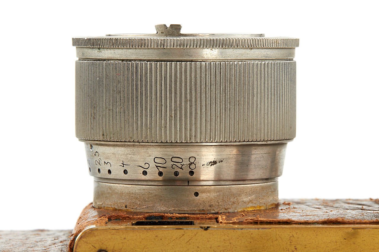 interesting 35mm prototype camera, according to the previous owner made in Italy, for square 24x24mm exposures, good quality internal parts and rotating shutter similar to the one used in Robot cameras, unmarked interchangeable nickel lens in M29 screw mount