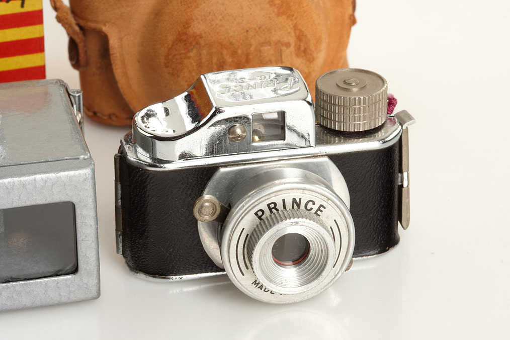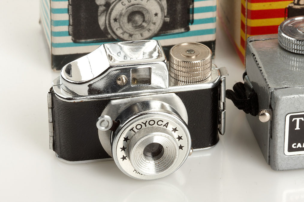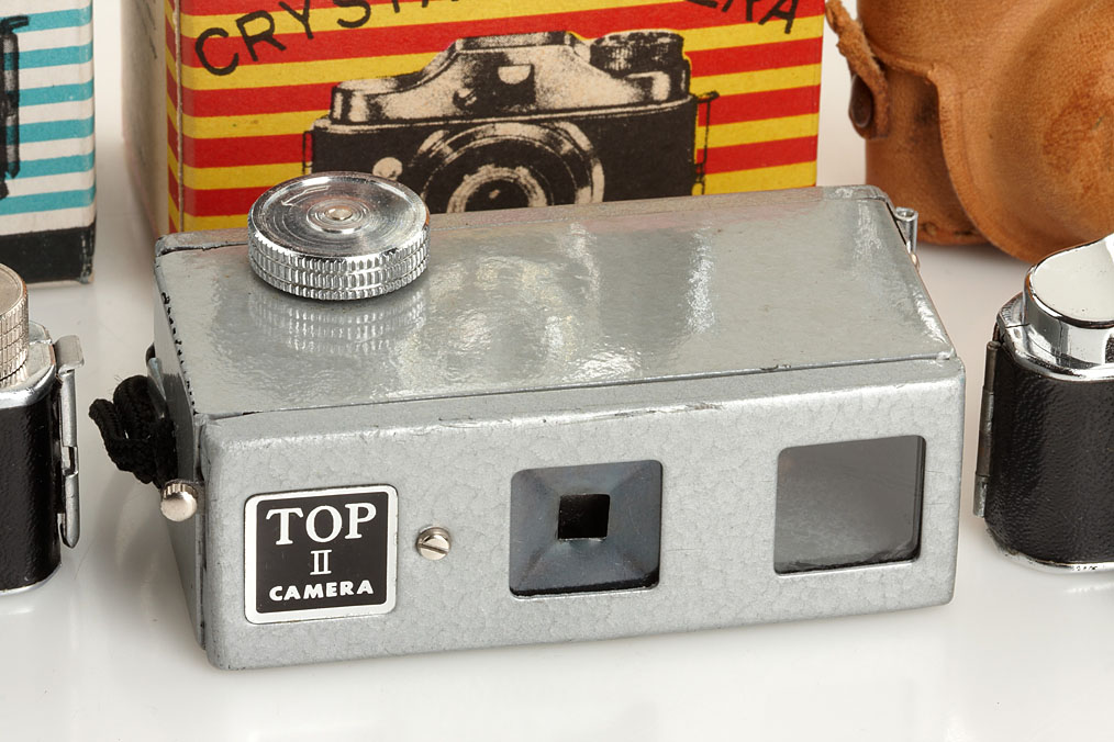 (1) Top II Camera for 14x14mm exposures (case), (2) Colly Hit-Type with instructions in maker's box, (3) Crystar Hit-Type with maker's box, (4) Mycro IIIA Hit-Type with case, (5) Toyoca Hit-Type, (6) Prince 16-S Hit-Type - all in good condition (6)