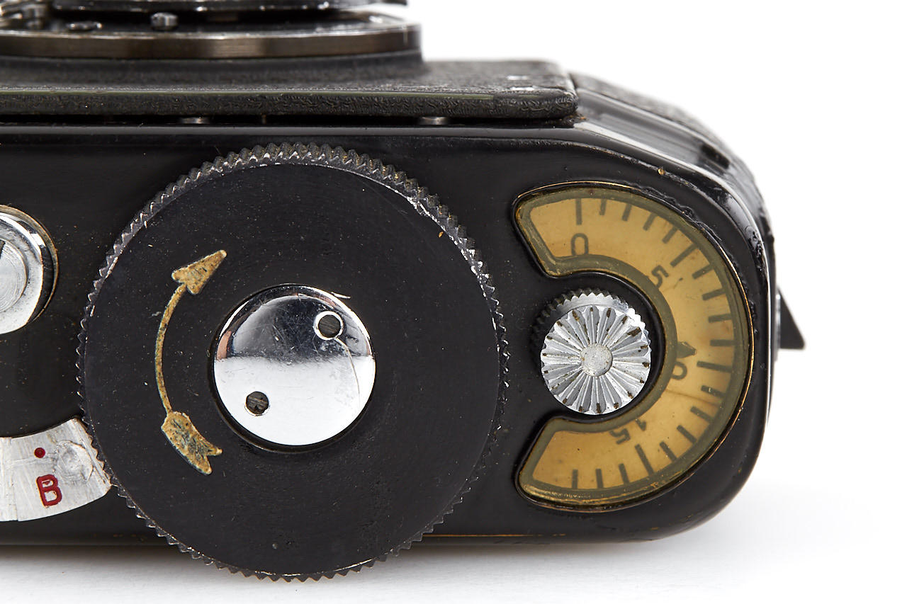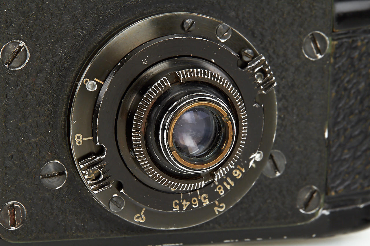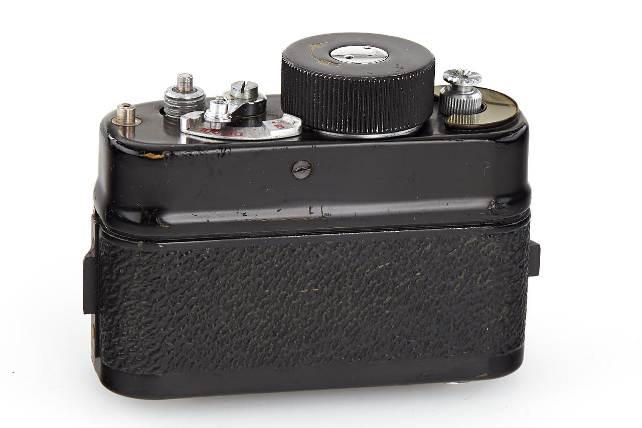 clockwork motorized spy camera made for the Russian secret service, with f:3.5 lens, additional fast 2.8/28mm lens, film spool, special wire release