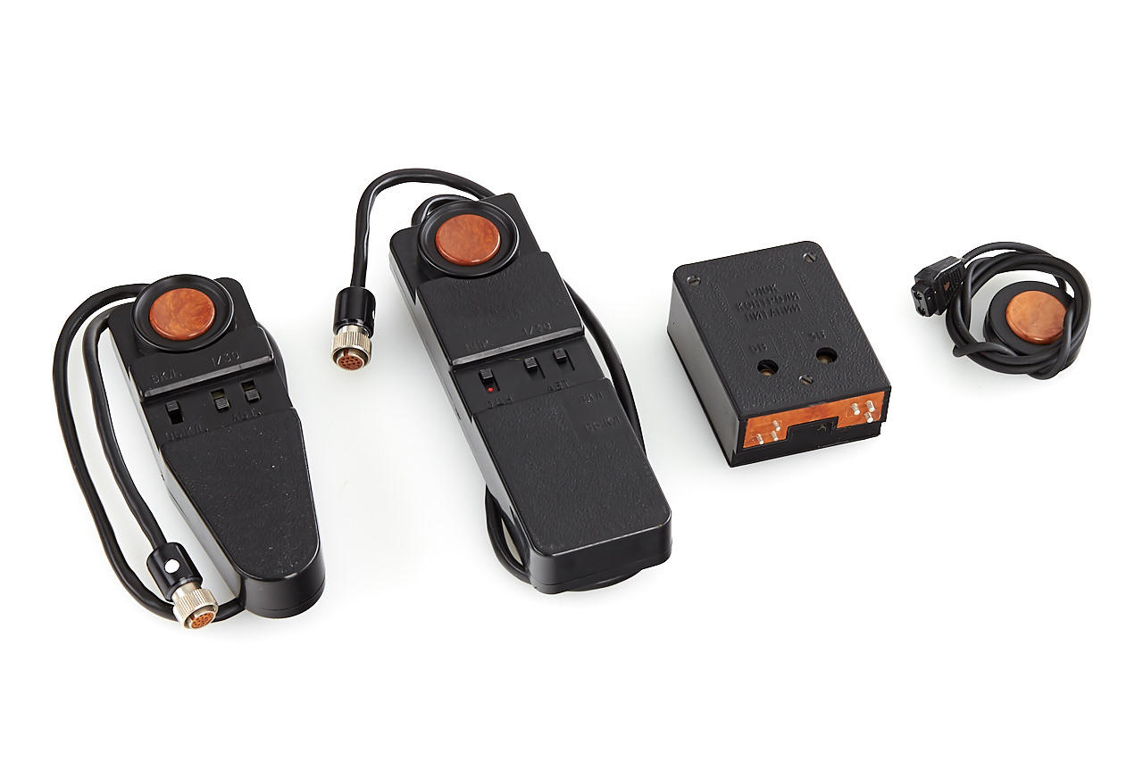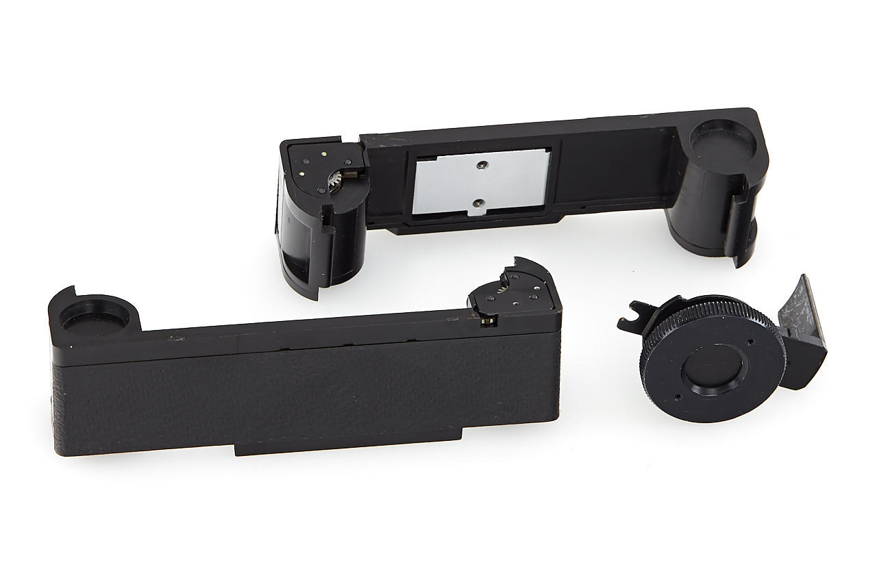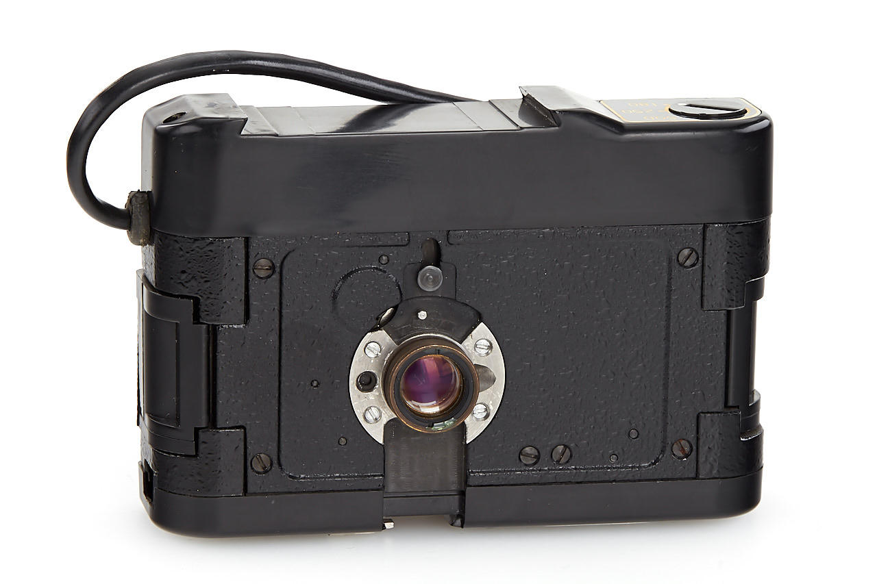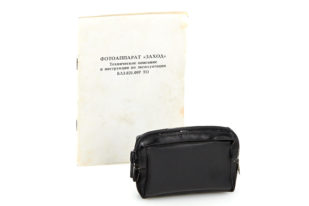 very rare original KGB outfit consisting of a motorized Zakhod camera, with an unmarked lens (probably 2.8/24mm), three electric camera releases - two with battery compartment, battery tester, two extra film magazines, concealing knob and rare original instructions