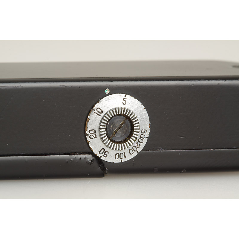 Improved model of the Totchka with Galilean finder and slightly altered Industar 3,5/15mm lens, round shutter speed dial (marked 5, 10, 20, 50, 100, 200 and 500). Frame counter on rear, in very good and original working condition