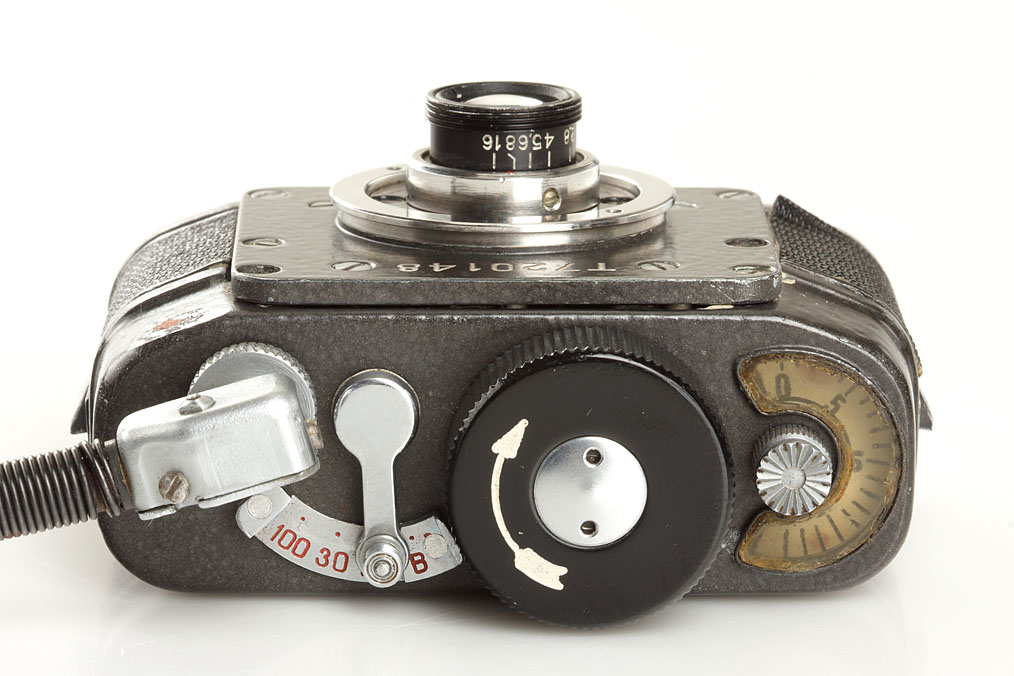 sub-miniature for 18x24mm exposures with clockwork motor-drive (needs Service), 2.8/28mm lens, cap, cable release