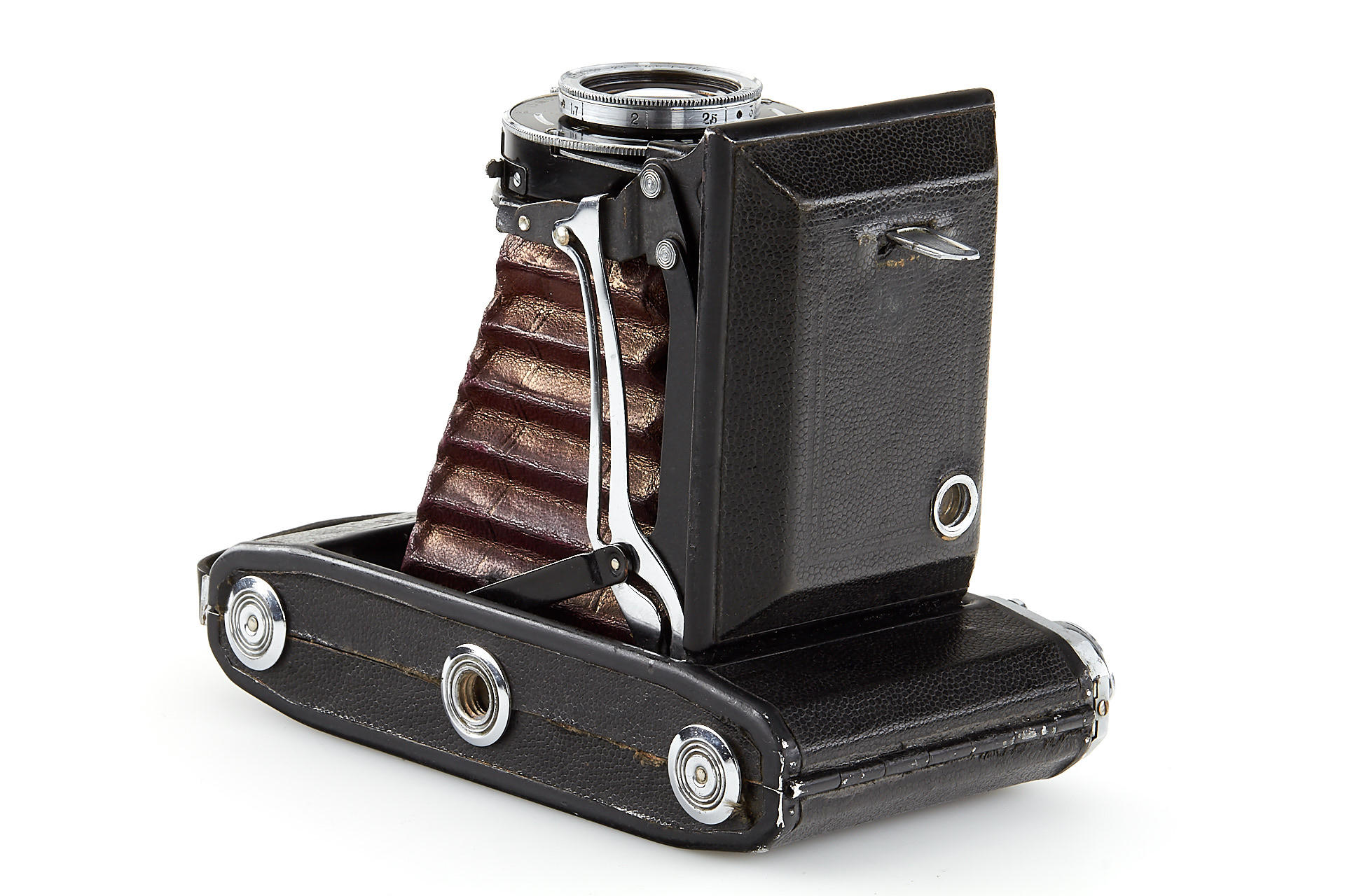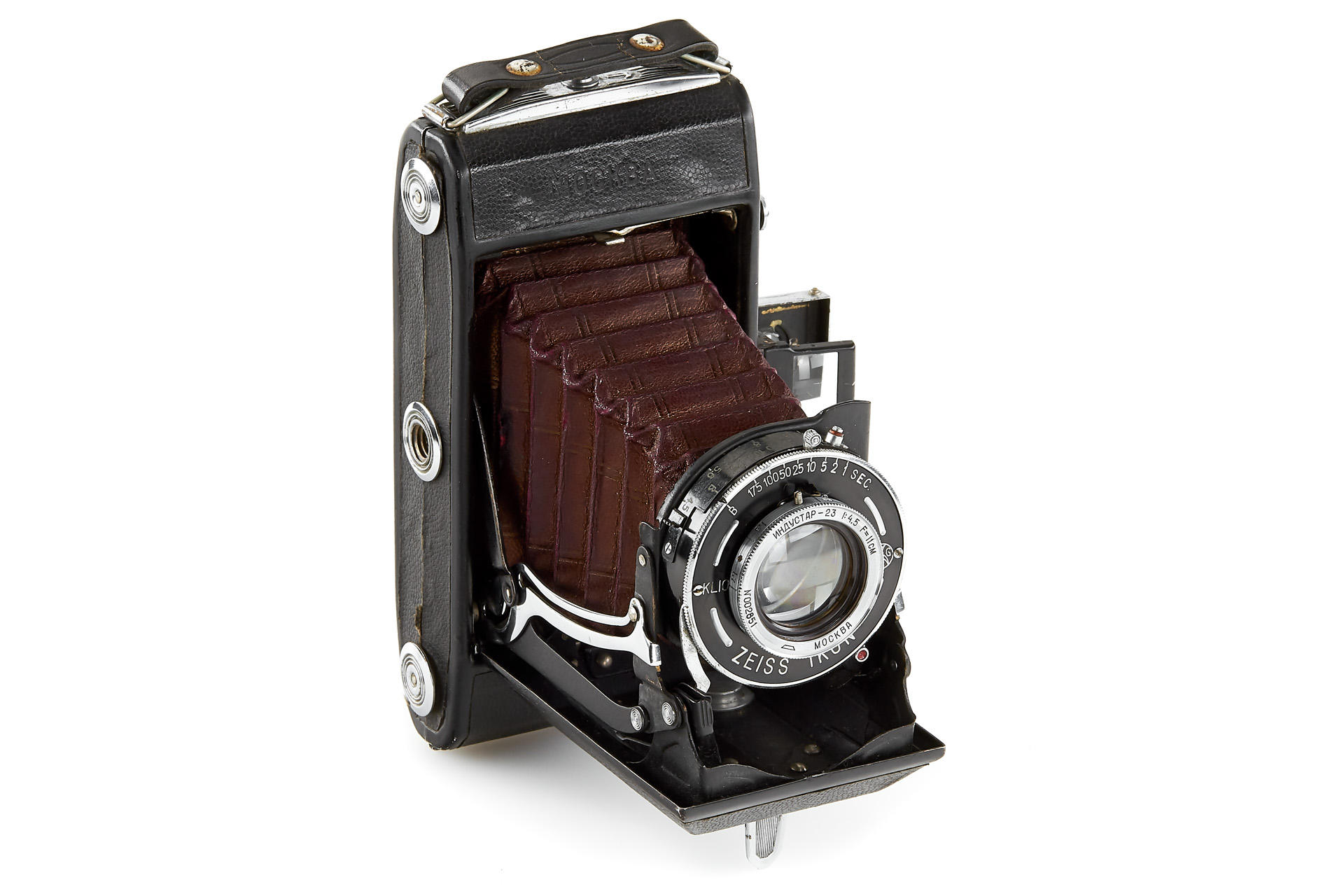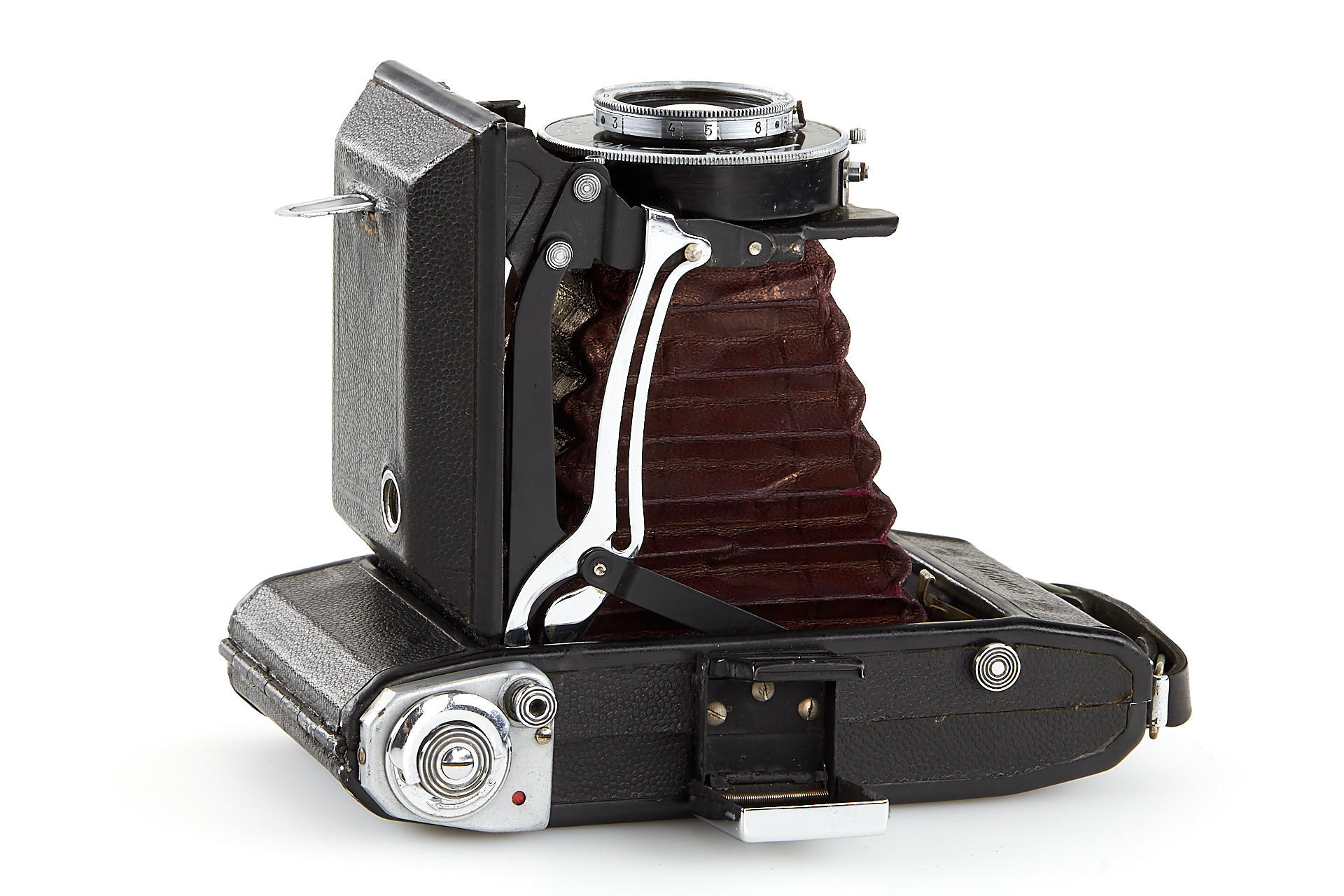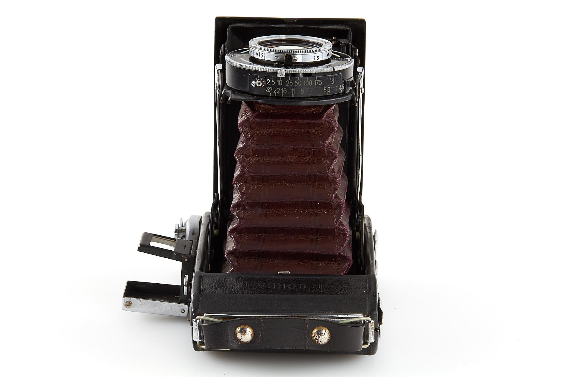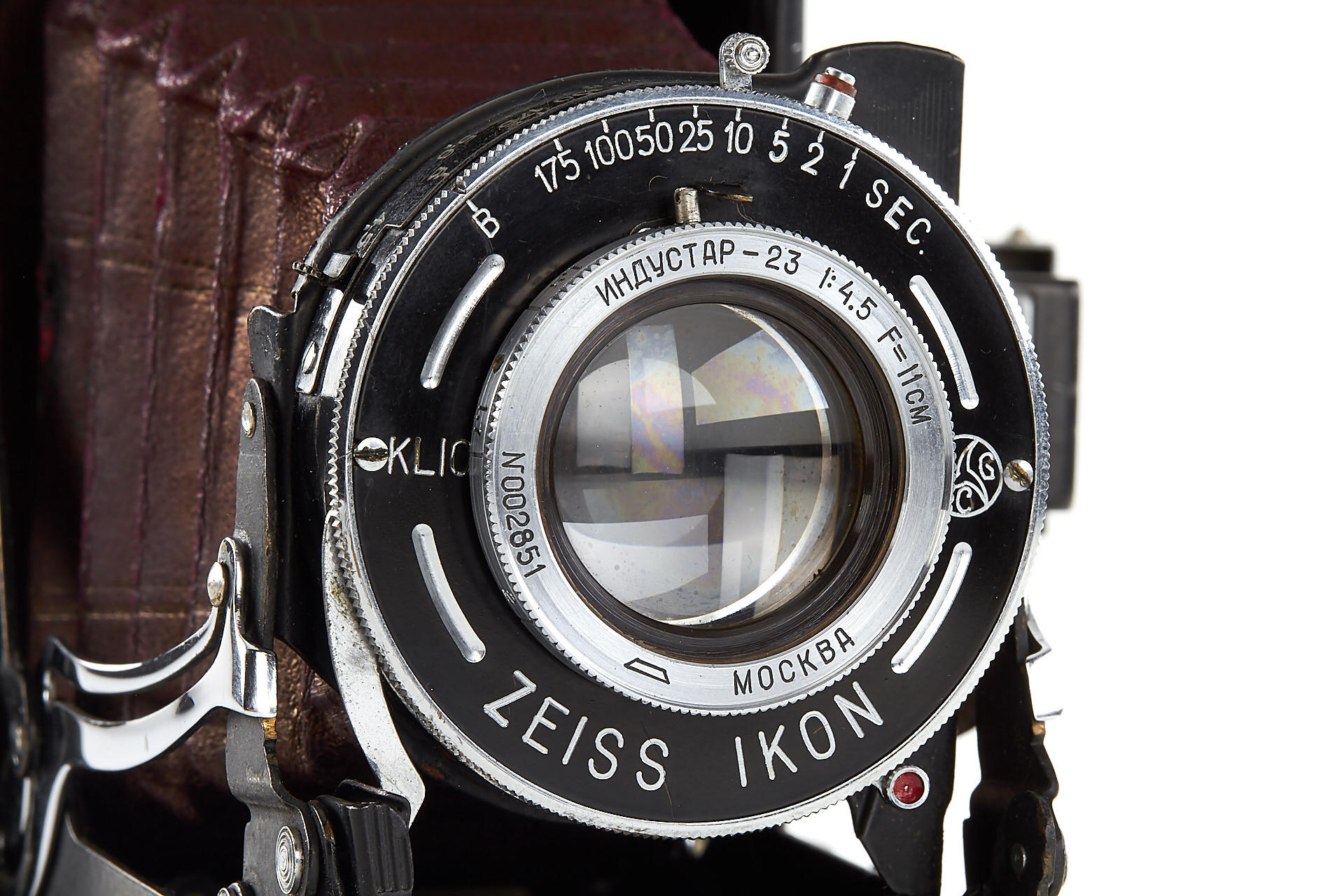an early 1947 version with Zeiss Ikon shutter, Industar 4.5/11cm no.002851, original brown bellows, leather case