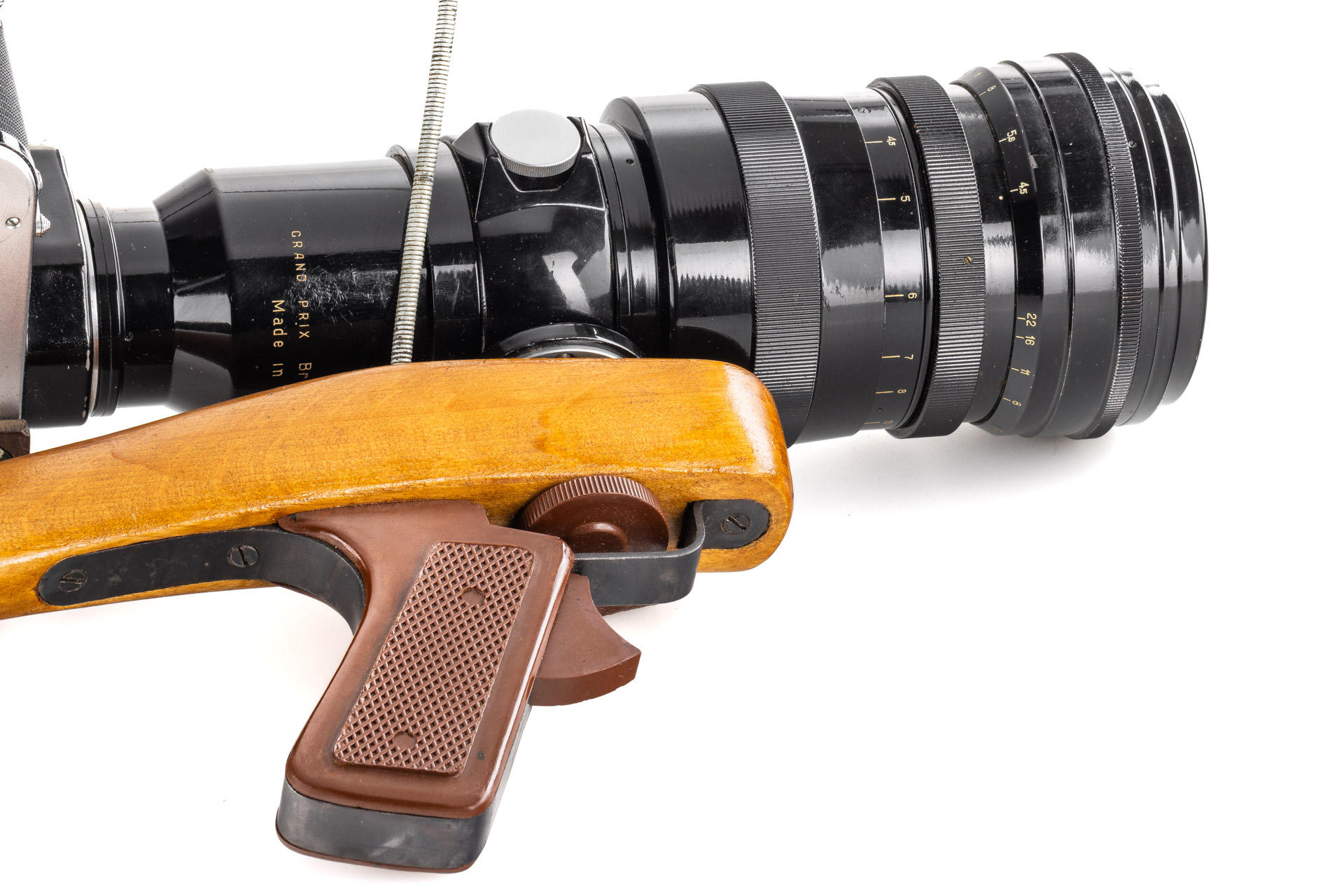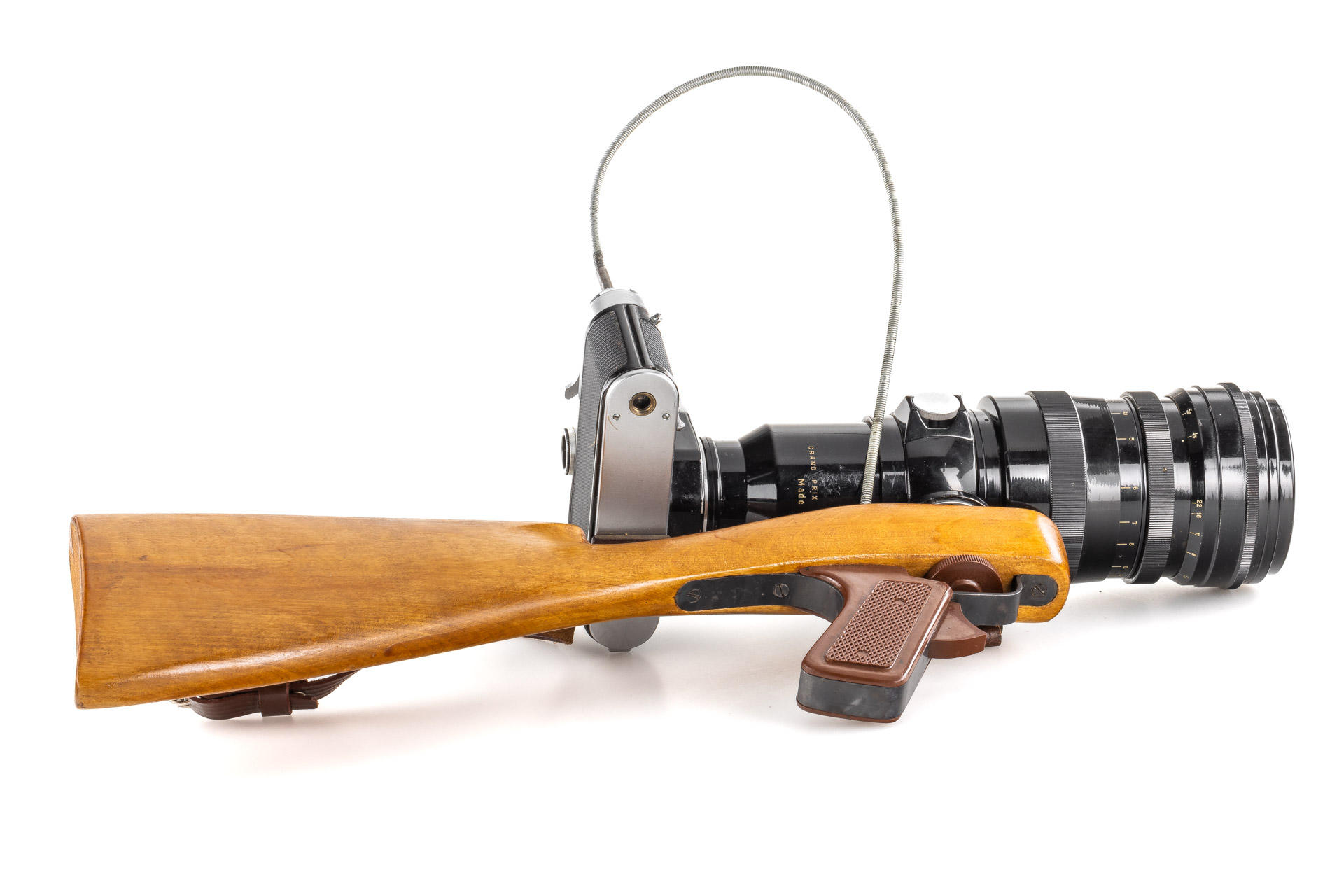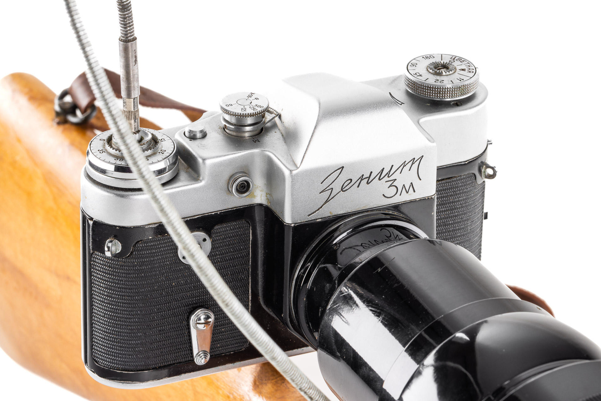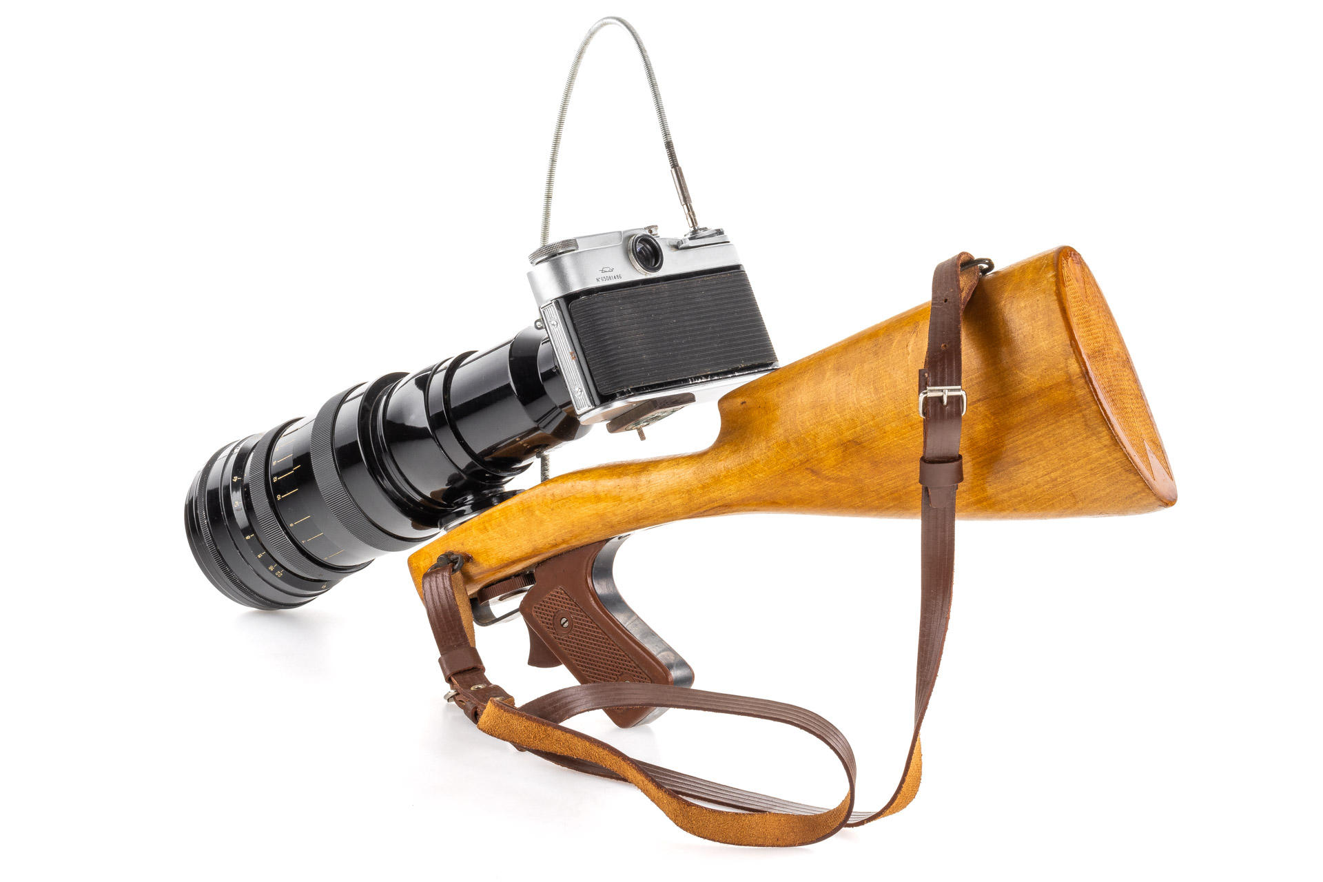 a very rare first version of the Fotosniper outfit, designed to work with SLR cameras, including a black painted, 1965 Tair-3 4.5/300mm no.652530 (M39 mount, with yellow filter, hood and caps), matching Zenit 3m no.65081486, instructions for the lens and a large brown outfit case, this outfit represents a missing link between the war-time FS-2 outfits and much more modern FS-3