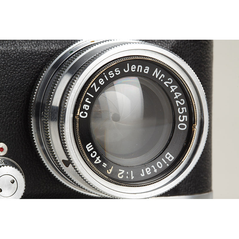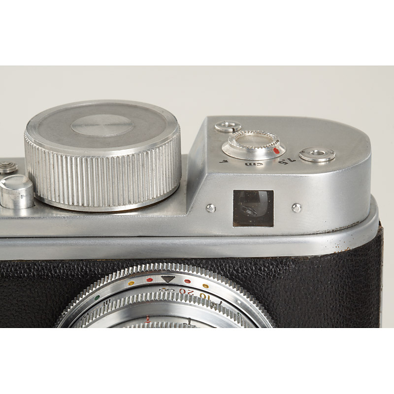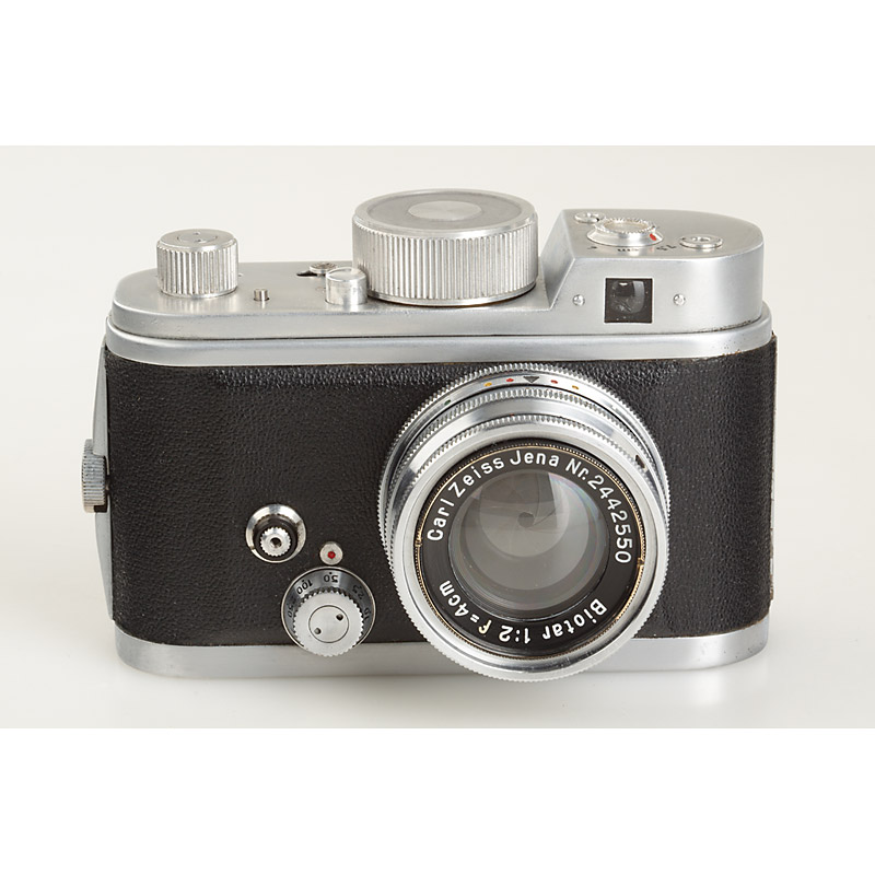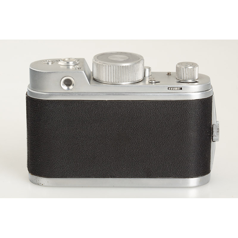 Kilfitt clockwork motor camera, prototype without serial number, quite similar to Robot II. The camera was built by Kilfitt before the patent was sold to Robot, swinging finder-mask for 7.5cm. Only 5 of these prototypes were produced, with Biotar 2/4cm no.2442550, in very good and fully working condition, case