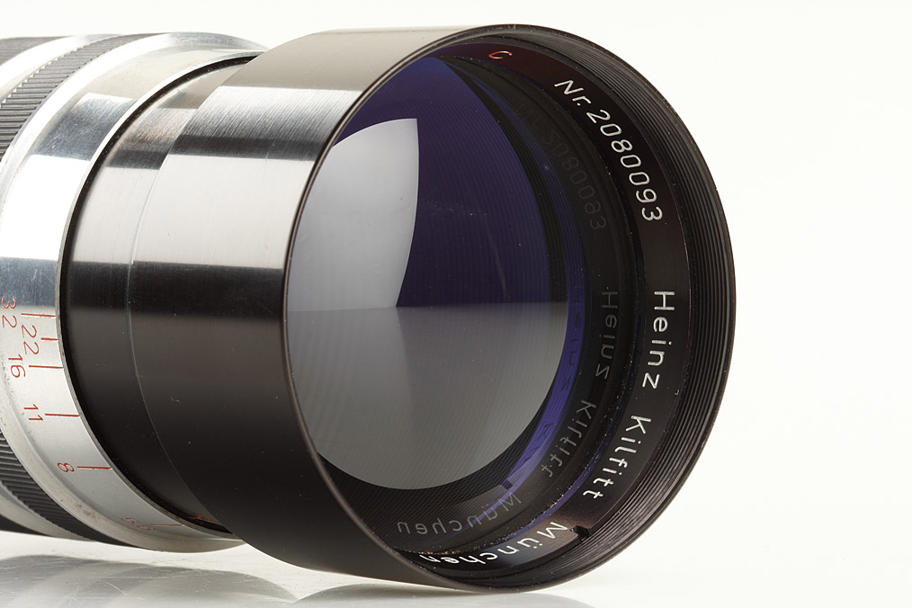 coated Tele-Kilar in very good condition with hood, mirror reflex housing with M39 screw mount, cap, leather case