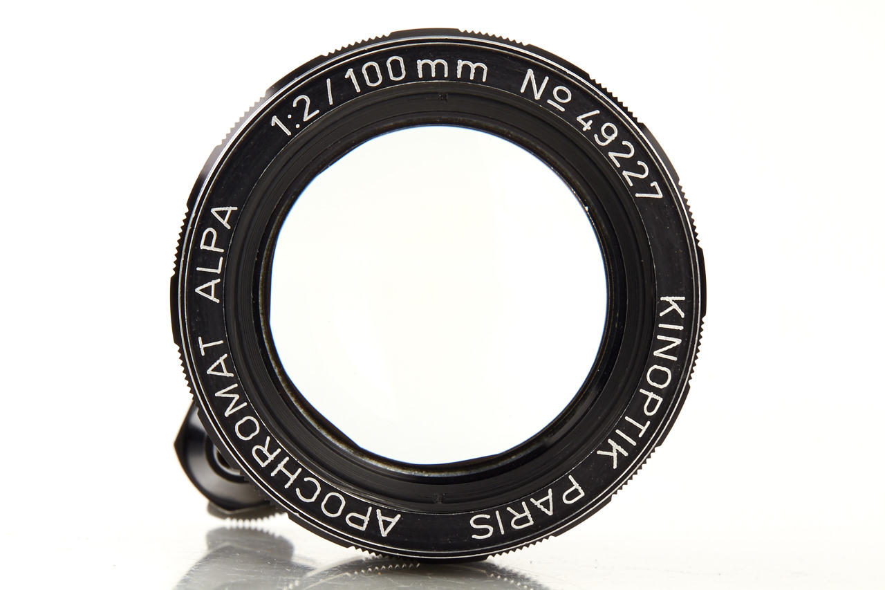 very rare black automatic Alpa lens in good condition, clear optics with some fine cleaning marks on front element, with original maker's box