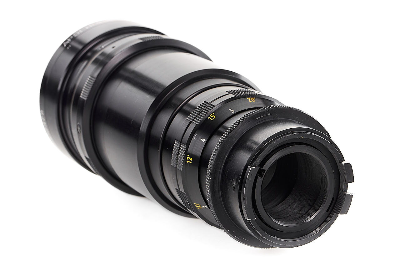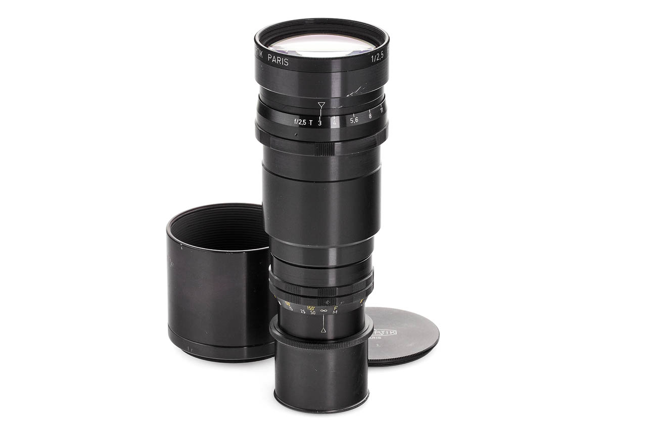 High definition cine lens made in France, in original Cameflex mount, in very good condition, good optics only showing some light cleaning marks, with both caps and metal hood.