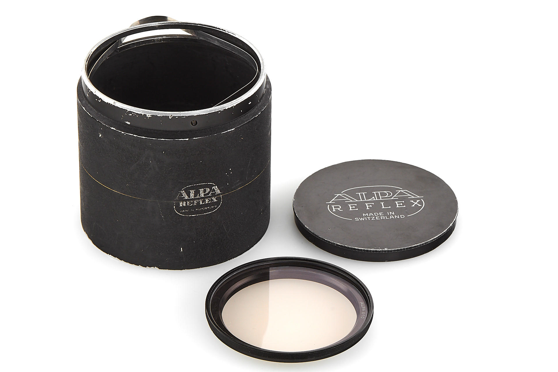 sought-after lens for Alpa, very rare version with manual aperture, according to the production numbers only 3 examples have been delivered from the factory (!), in very good condition, optics with minimal cleaning marks and tiny chip in rear element, incl. hood (cond. B-), UV filter, both caps