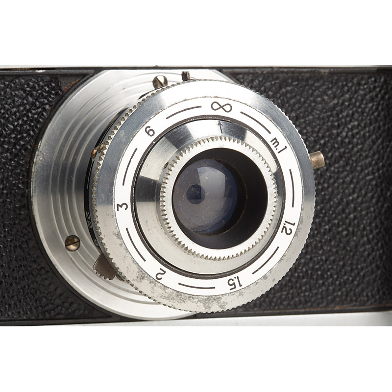 very rare Italian 35mm camera for 24x36mm exposures, collapsible lens with built-in shutter (T, 1/25-1/100 sec.), original case