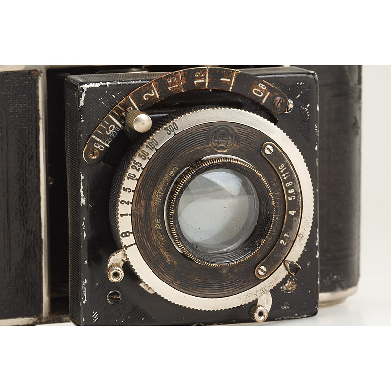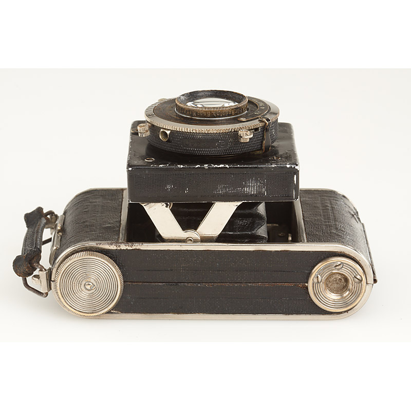 3x4cm, strut-folding camera for 127 film, very rare with Makro-Plasmat 2.7/5cm no.504257 (good lenses, few small marks on front element) in working Compur shutter