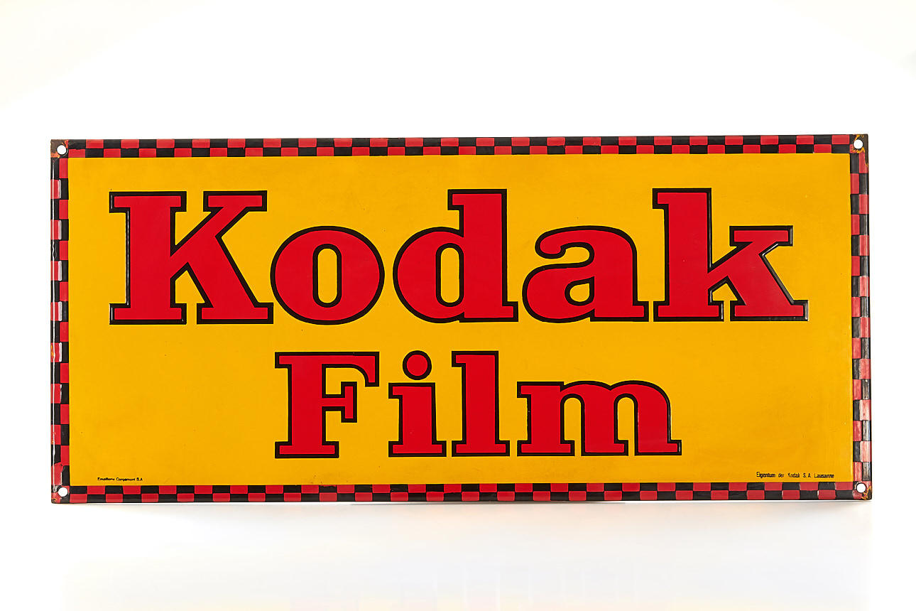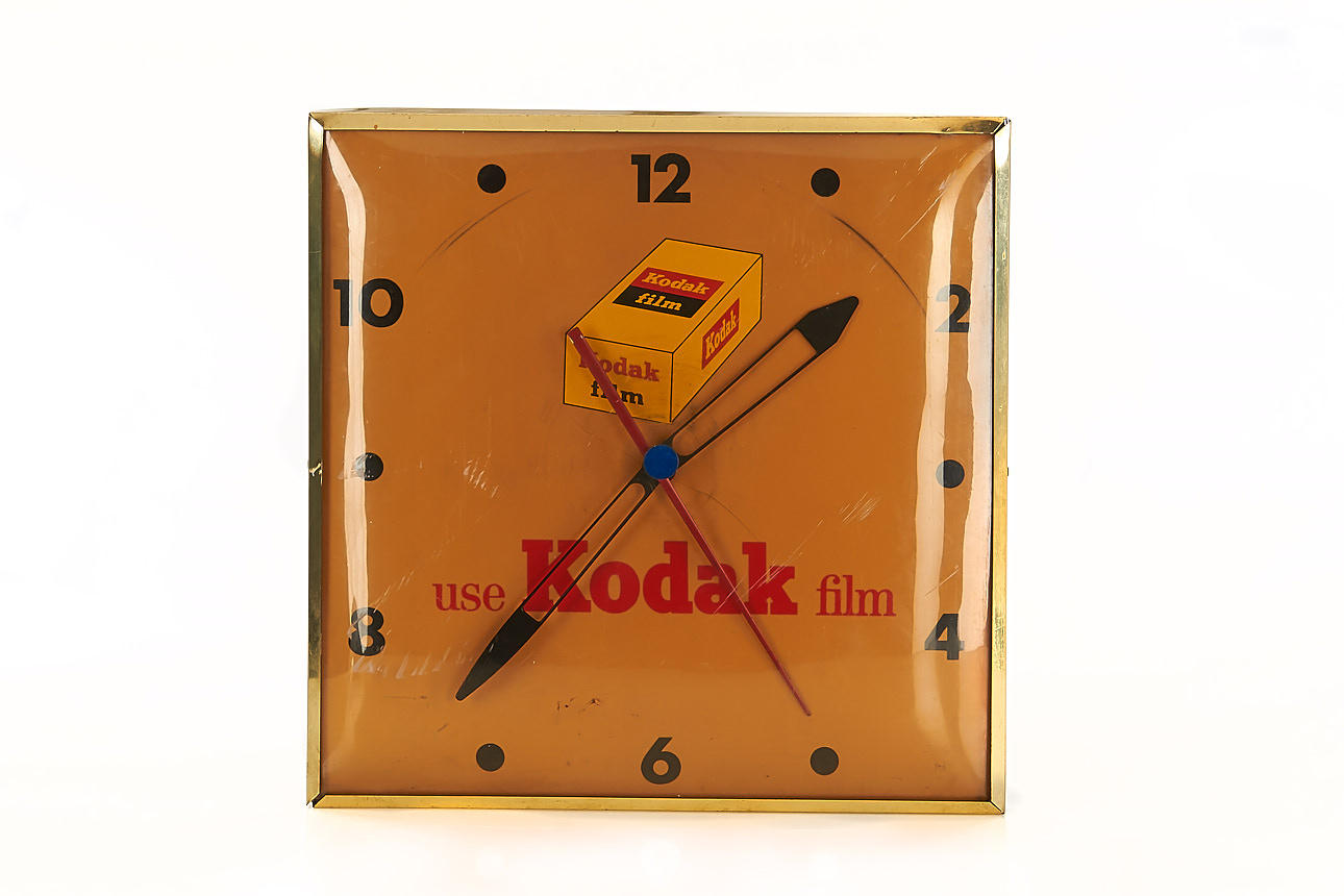 large Kodak Film enamel sign c.92x41cm in very good condition, together with Kodak wall clock 'Use Kodak Film', c.39x39cm